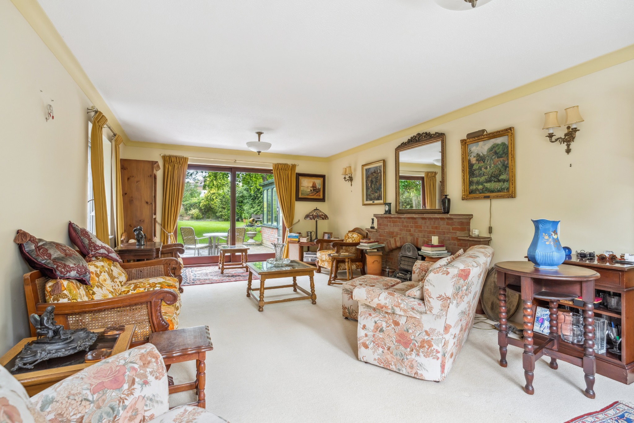 Spacious living room with sliding doors to the garden
