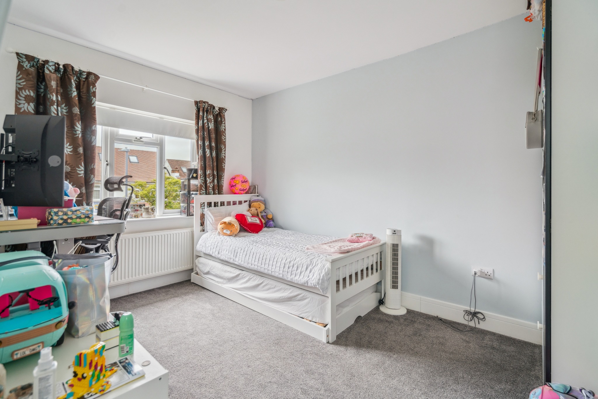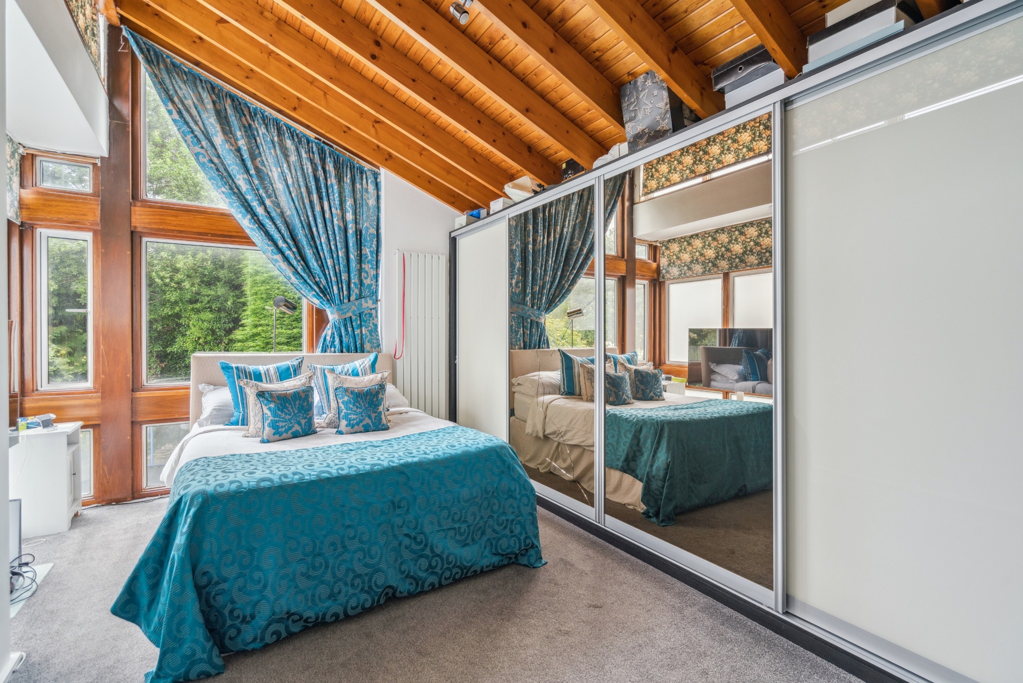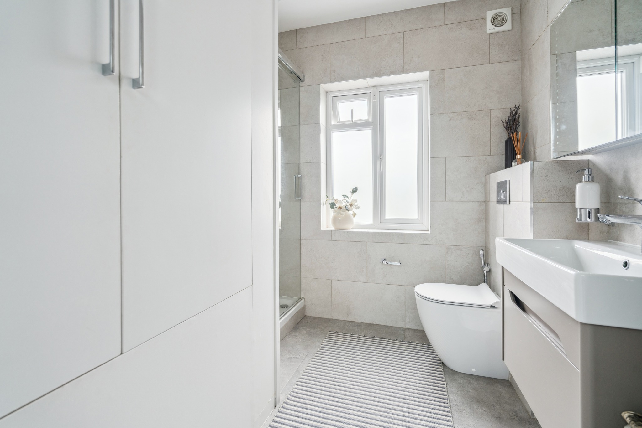 The principal bedroom benefits from fitted wardrobes and a modern en-suite bathroom. There are four further well-proportioned bedrooms, two of which also feature fitted wardrobes. A stylish family bathroom includes a shower, under-sink storage, and a large built-in storage cupboard.