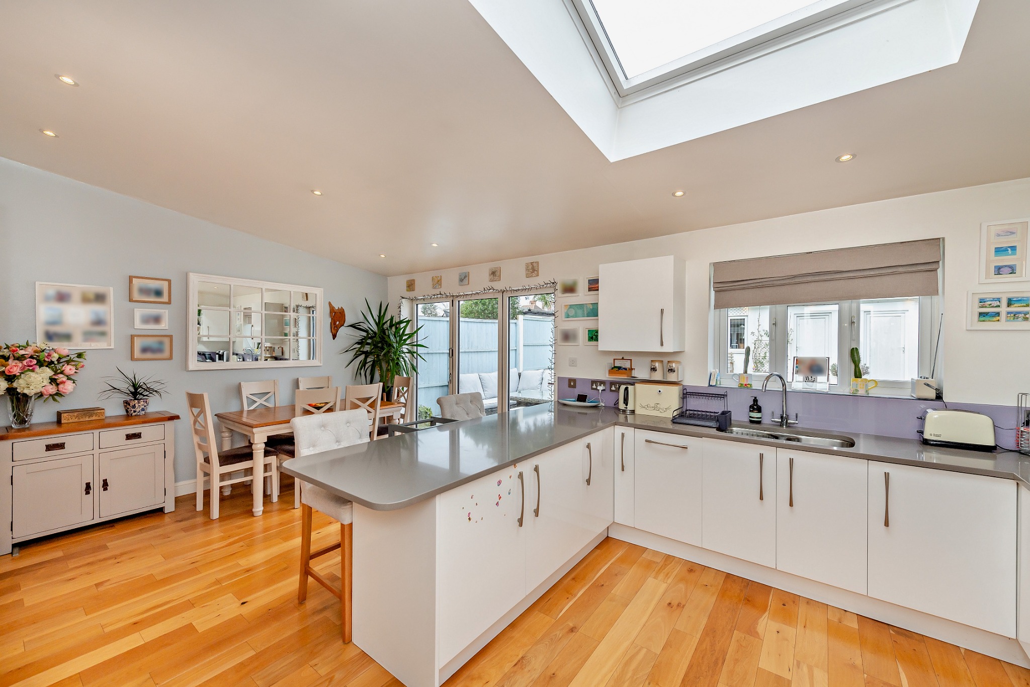 Upon entering the property, you are greeted by a welcoming hallway with stairs to the first floor. Off the hallway is a front-aspect reception room with a bay window and a separate, spacious reception room with a feature fireplace that effortlessly flows through to an open-plan kitchen/reception room. The kitchen features a range of modern units that provide ample storage space, integrated appliances, a breakfast bar, a skylight and bi-folding doors that allow the room to be flooded with natural light. Off the kitchen is a utility room with additional storage units and a guest shower room.