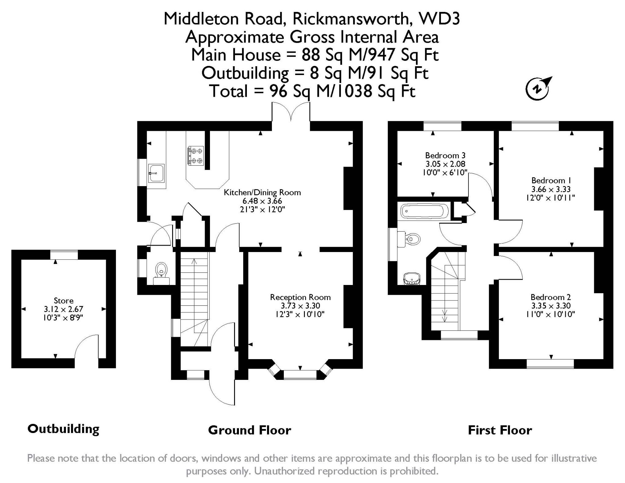 To the first floor are three good sized bedrooms and a modern part tiled family bathroom, which has a shower above the bath and glass screen, towel radiator, under sink storage and a mirrored cabinet above.