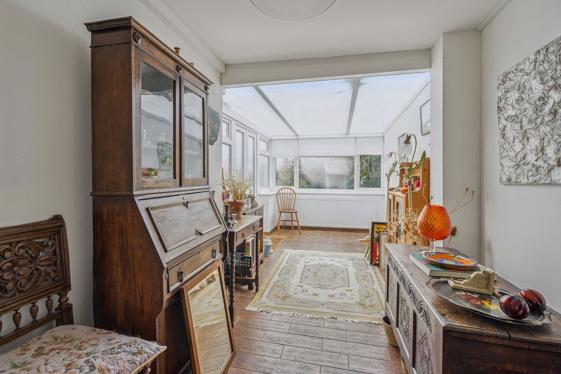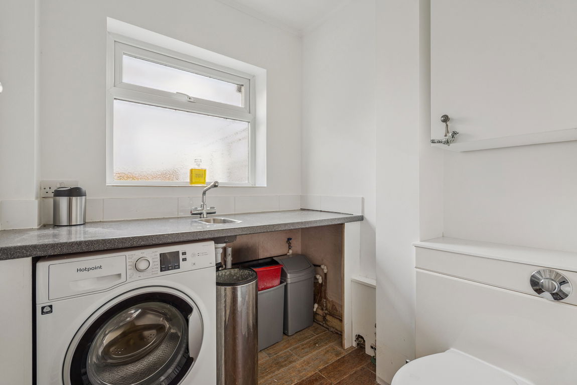 The porch leads into a hallway providing access to a front-aspect living room, featuring a charming bay window and an attractive feature fireplace. The living room flows seamlessly into the kitchen, which offers a range of fitted units and integrated appliances. A door from the kitchen leads to a useful utility room with a WC, a second reception room and a generous conservatory. The conservatory enjoys views over the rear garden and features French doors providing direct access outside. The garage can also be accessed conveniently from the conservatory.