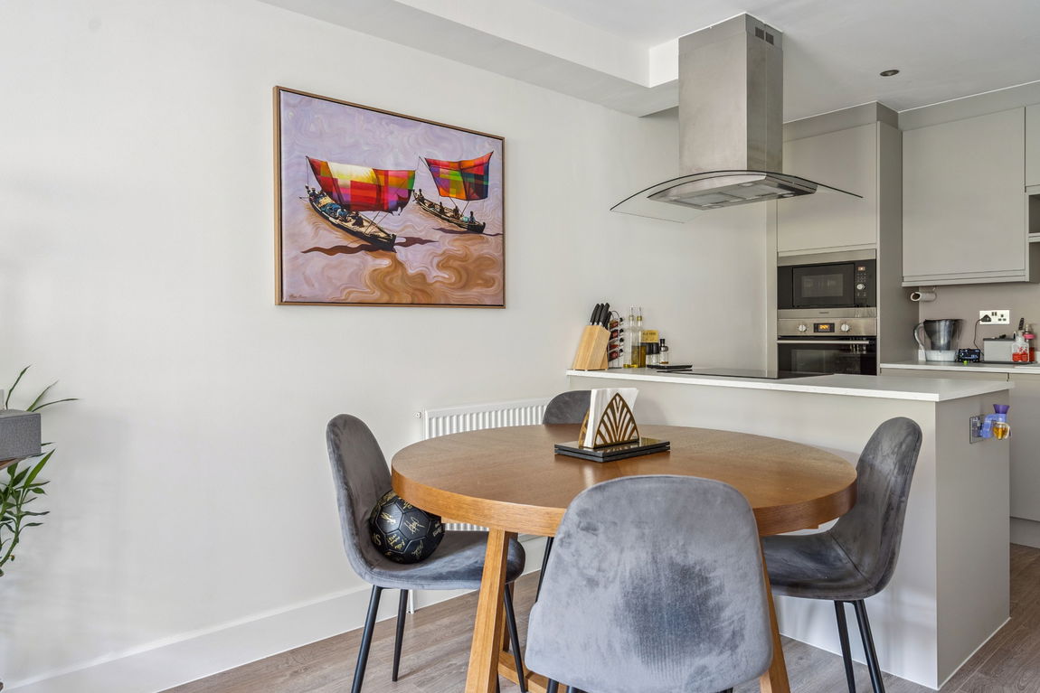 The apartment opens into a spacious hallway with a useful storage cupboard, leading to a generous 23’7 x 11’8 open-plan reception room/kitchen. This light-filled space is perfect for both relaxing and entertaining, with the kitchen boasting a contemporary range of fitted units and integrated appliances.