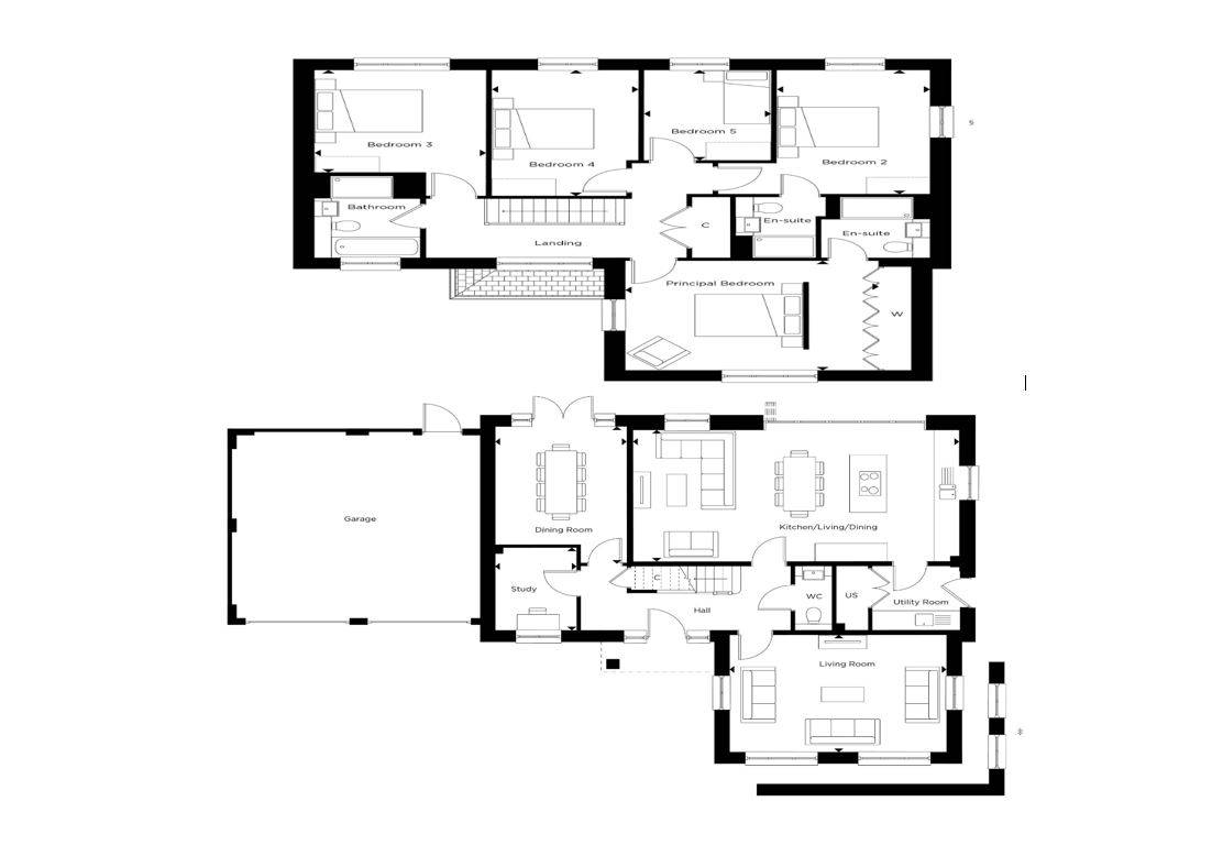 This brand new 5 bedroom detached show home is now available fully furnished and interior designed throughout. Featuring a large open-plan kitchen/dining/family area, utility room, separate lounge, dining room and study, this home offers flexible accommodation to suit a variety of lifestyles. To the front, The Lawrence has driveway parking for two cars and a detached double garage, and to the rear a private landscaped garden.