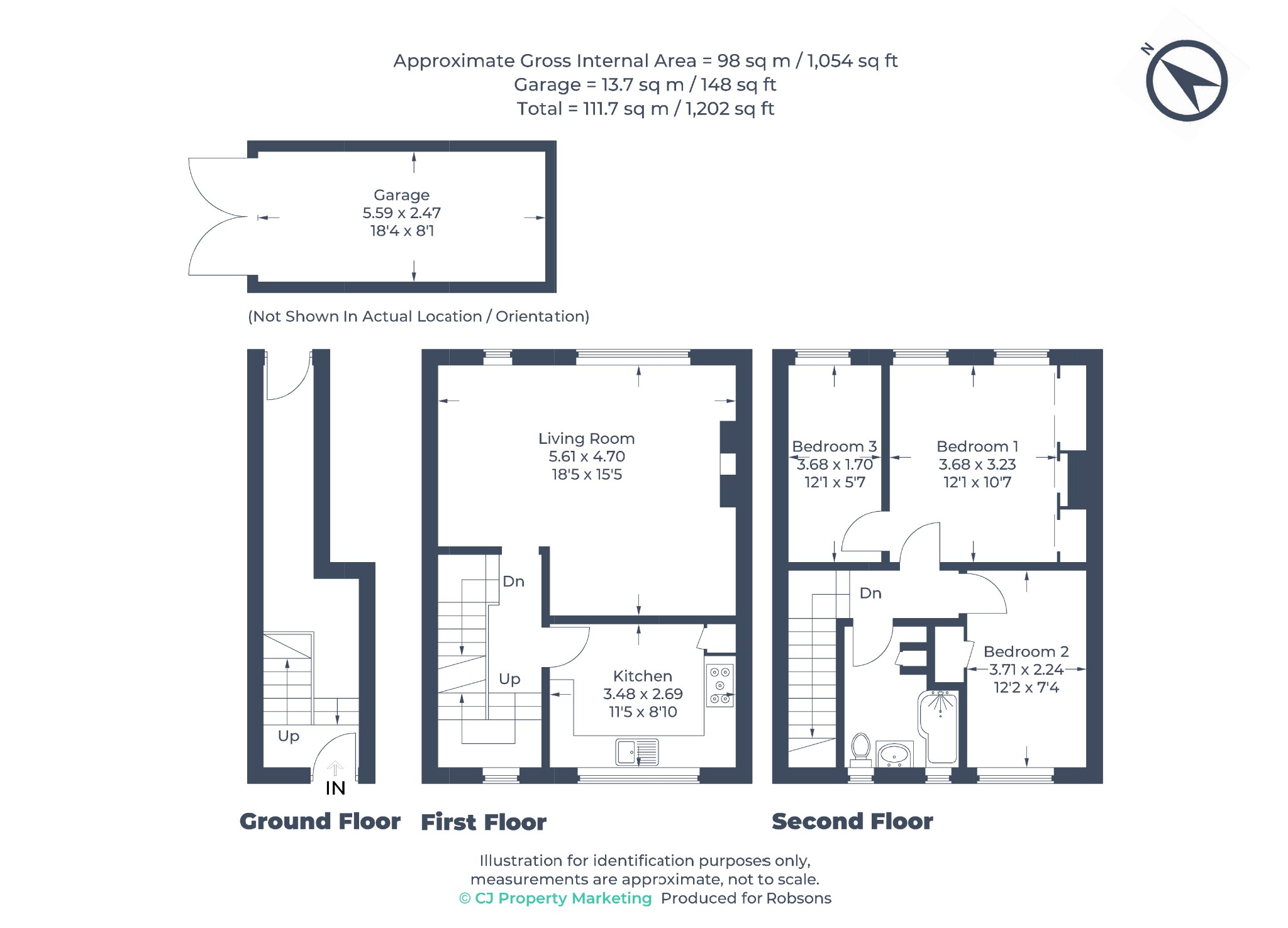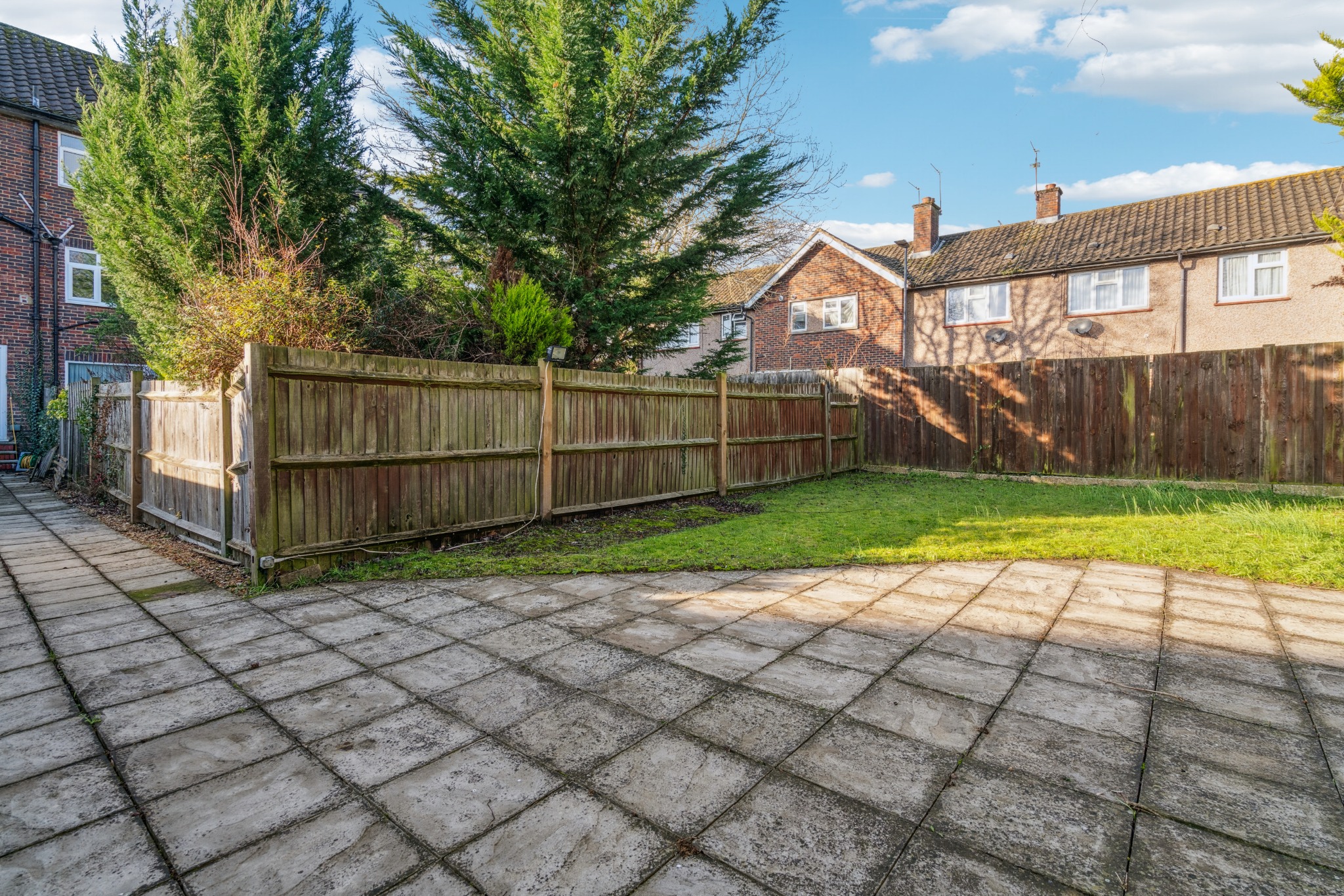 The property comprises a generous reception room and a modern fitted kitchen on the first floor, with two/three bedrooms (one with fitted wardrobes), and the family bathroom located on the second floor. In addition, there is a good-sized, private rear garden that is part lawn and part patio, a garage in a nearby block and access to part-boarded loft space for storage.