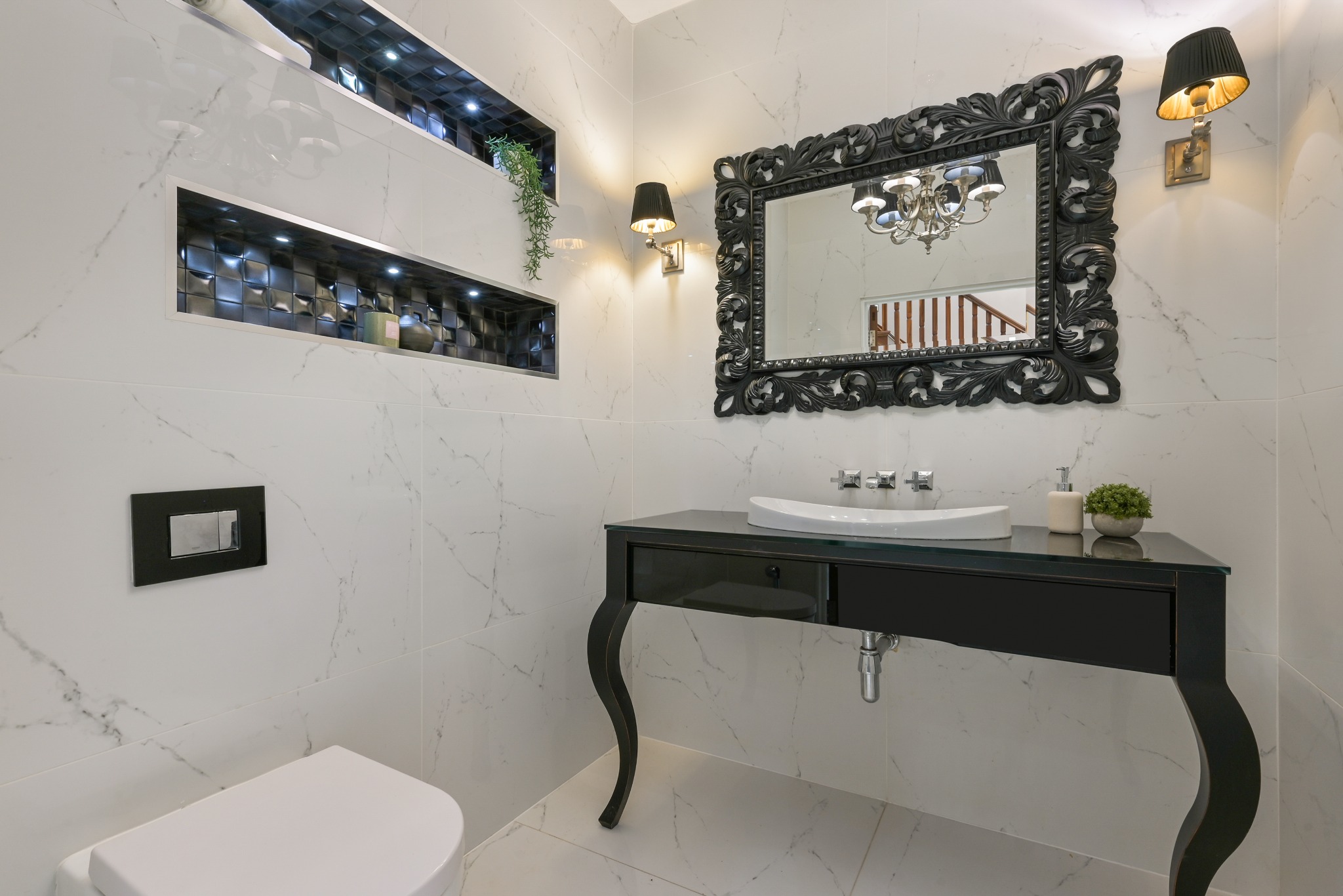 On the ground floor is an exquisite open-plan kitchen/dining/living room, appointed with high-end appliances and cabinetry and offering direct access through beautiful sliding doors to the expansive landscaped garden. There is also a well-appointed study with fitted furniture, and an additional formal living room. The property also benefits from a separate spice kitchen/utility room, a beautiful guest w/c and a bespoke wooden staircase in the expansive entrance hall.
