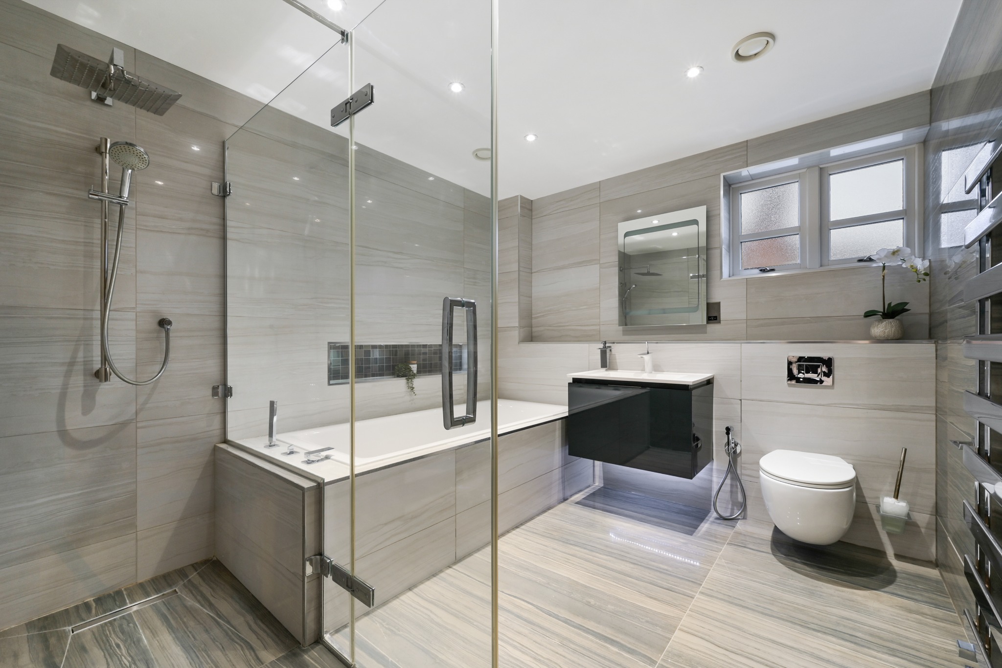 Positioned on one of Northwood’s most sought-after residential roads close to the centre of town, the property is set back from the road with a spacious driveway that provides off-street parking for multiple vehicles. Internally, the property offers in excess of 4,500 sqft of accommodation set over three floors, with underfloor heating throughout and also has a built-in lift providing access to all floors.