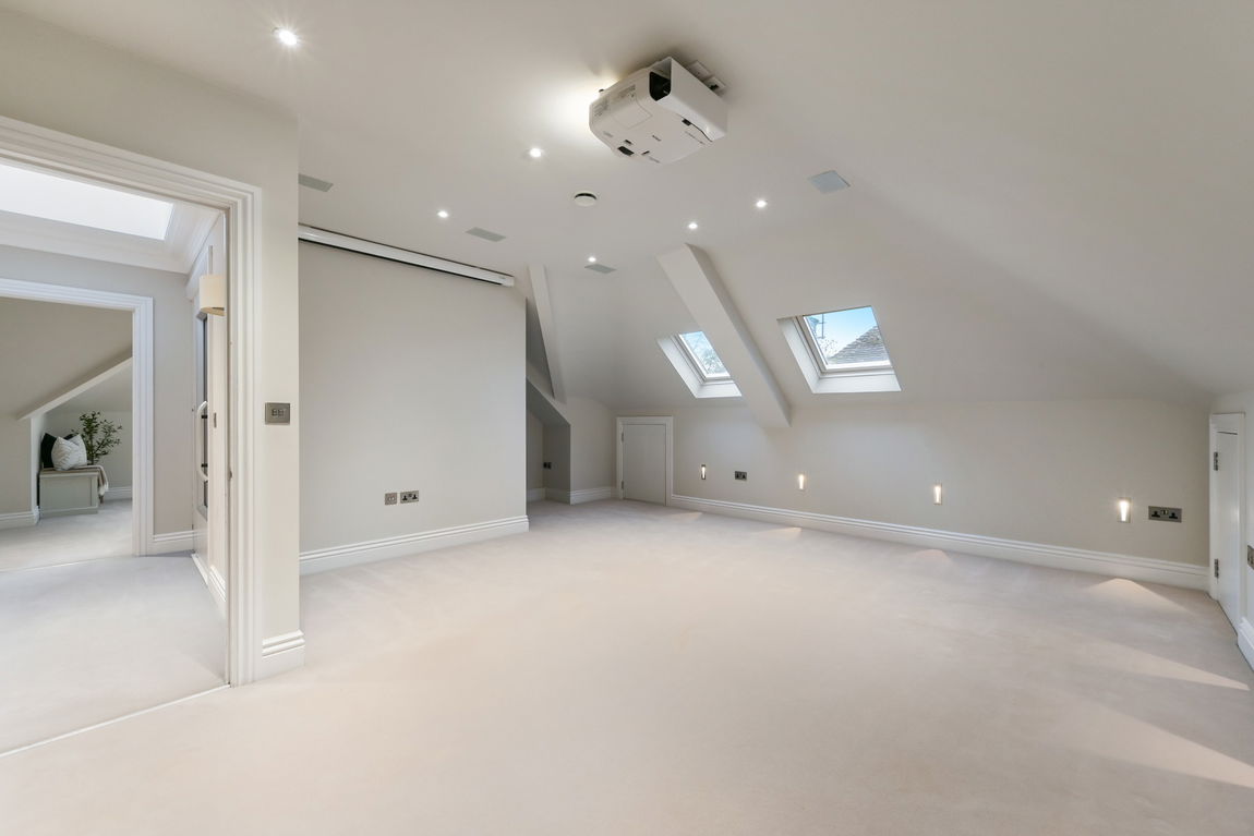 On the second floor you can find an additional two double bedrooms, both with built-in wardrobes and storage, a bathroom and a fully fitted cinema room with bespoke kitchenette. The property has been masterfully cultivated to a stunning specification, including Rako Lighting system, underfloor heating, automatic controlled fitted blinds, plus much more.