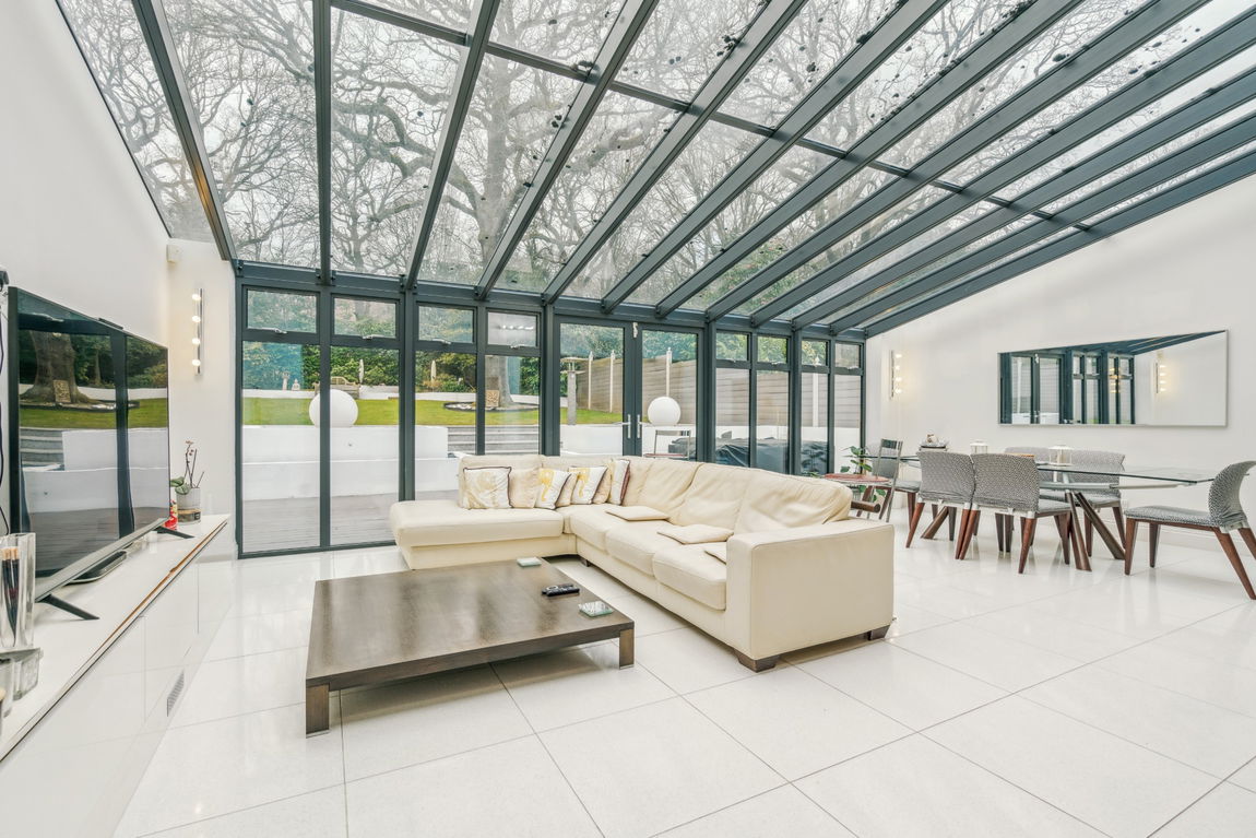 To the ground floor, the property comprises a spacious reception hall, four reception rooms and a fully fitted kitchen with ‘Miele’ integrated appliances which opens to an impressive conservatory/family area with double doors opening to the rear garden.