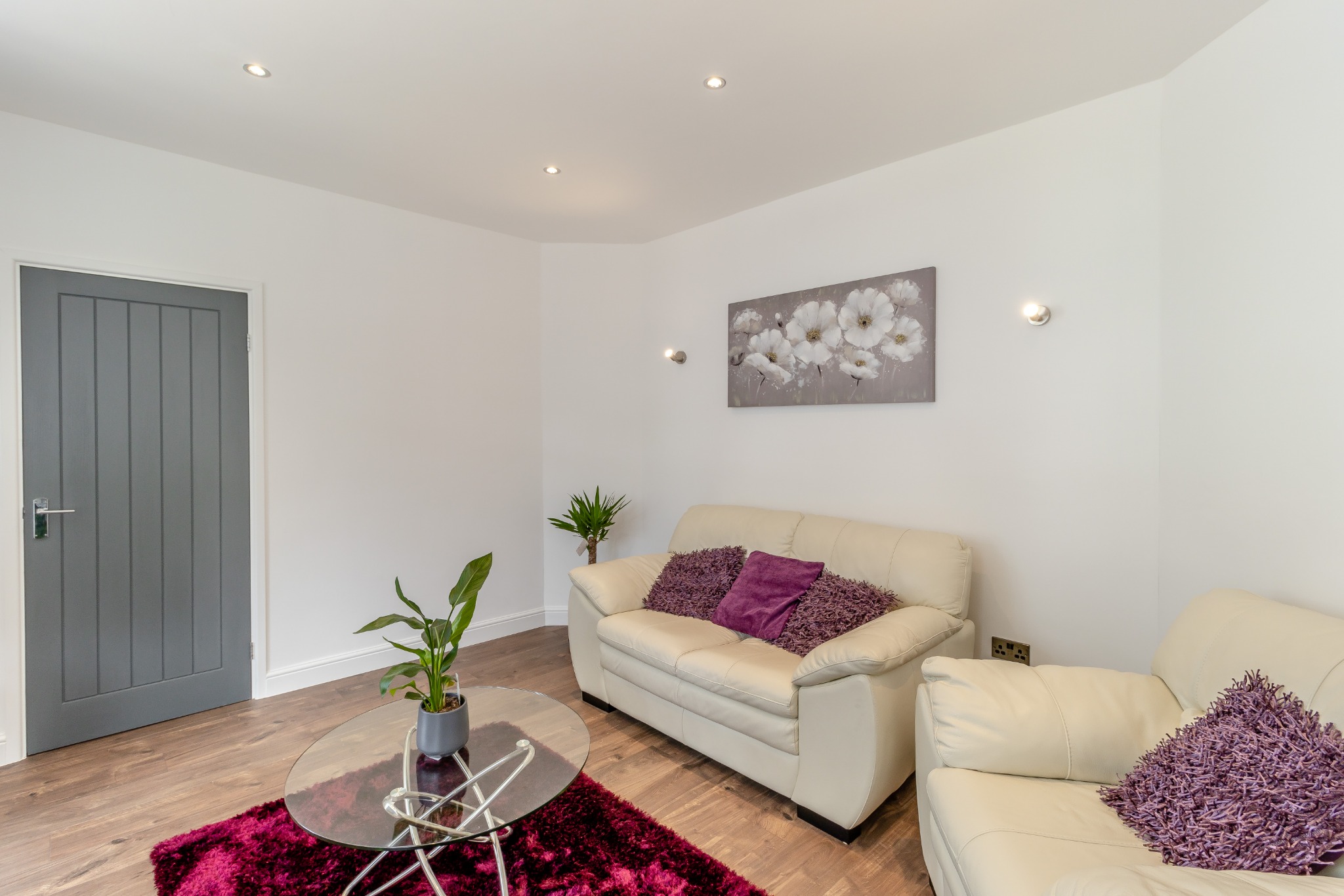 The ground floor comprises an entrance hallway and a guest WC, two generous reception rooms and a modern fitted kitchen. The kitchen offers both base and eye-level units which provide plenty of storage space, with the added benefit of a five-ring gas hob and integrated appliances. To the first floor there are two double bedrooms, a further bedroom and a luxury four-piece family bathroom.