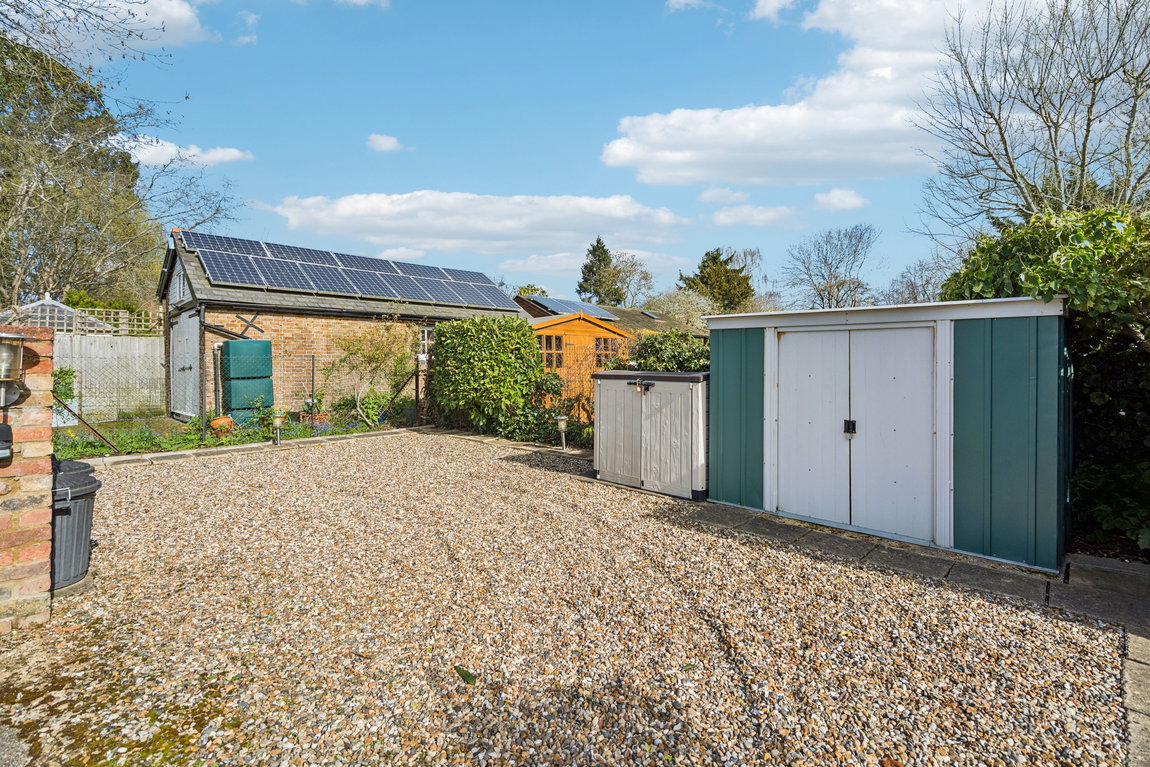 Outside, a private rear garden provides a tranquil outdoor escape, while off-street parking for multiple vehicles is available with a driveway to both the front and rear of the property with additional lock-up storage units.