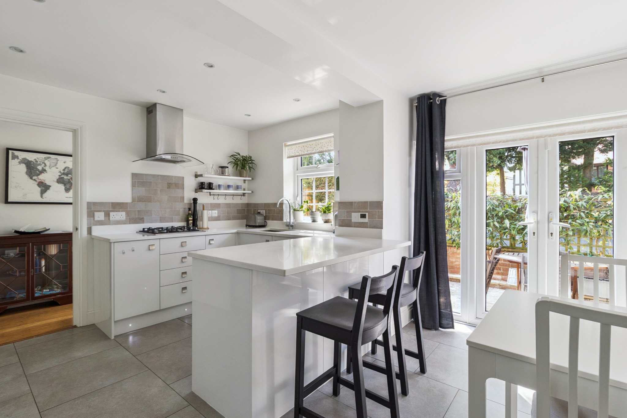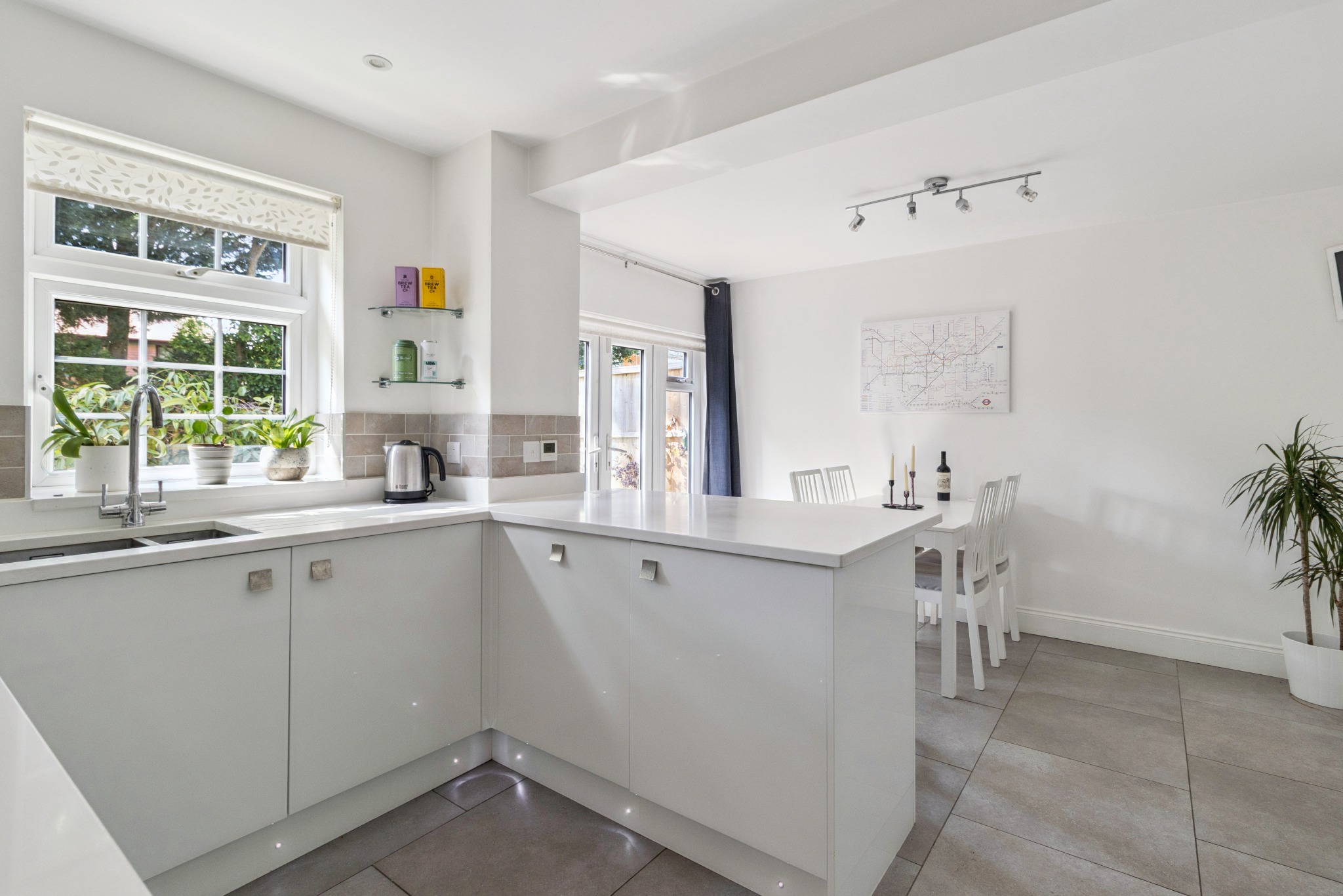 Set back from the road, the property takes advantage of off-street parking and an attractive private terrace to the front accessed from the open-plan kitchen/dining room. Further features include a well-maintained private rear garden with a large newly remodelled patio area and newly installed garden shed.