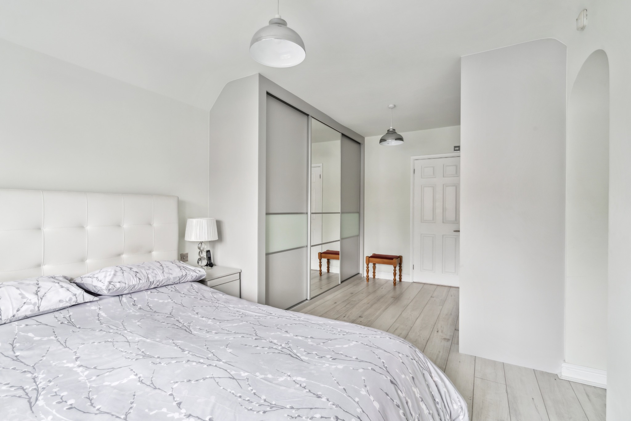 To the first foor, the principal bedroom benefits from a dressing area with fitted wardrobes and an ensuite shower room. There are a further four bedrooms and a modern family bathroom.