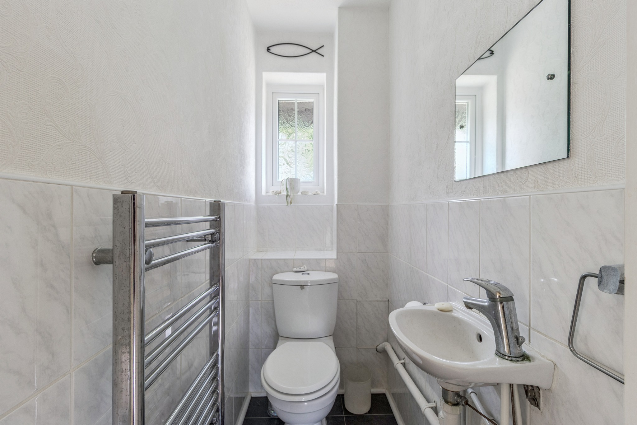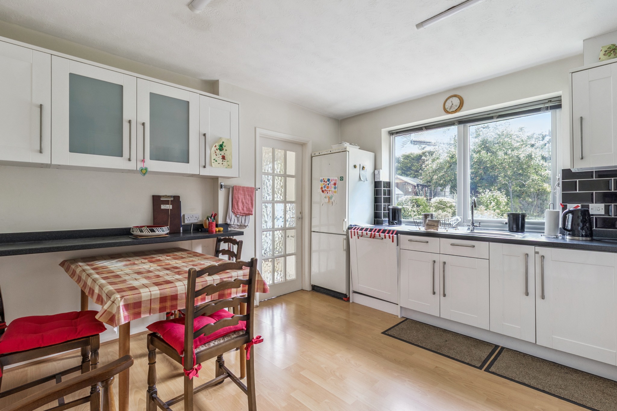 Outside, a private rear garden with a patio area offers an excellent space for outdoor dining and relaxation.