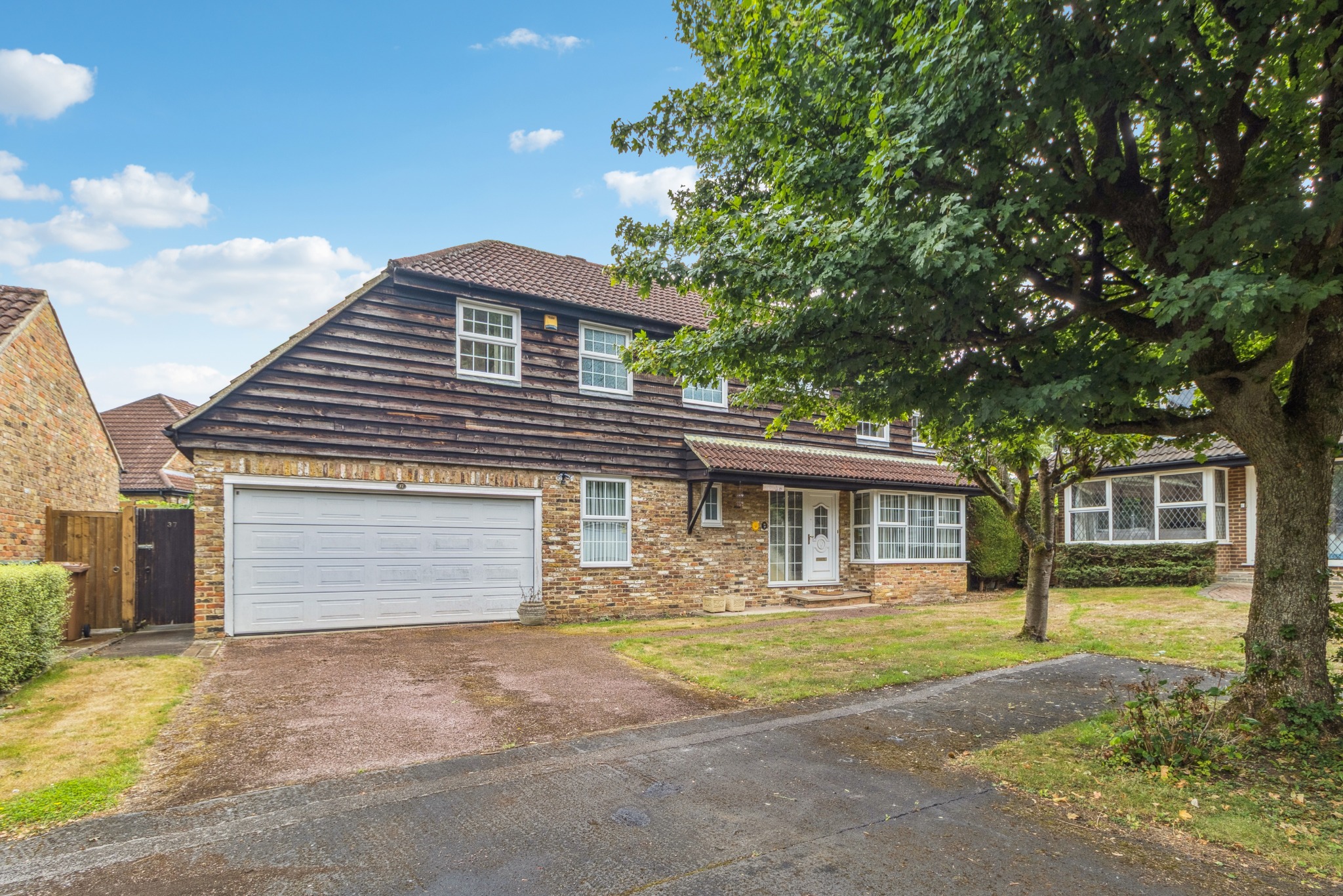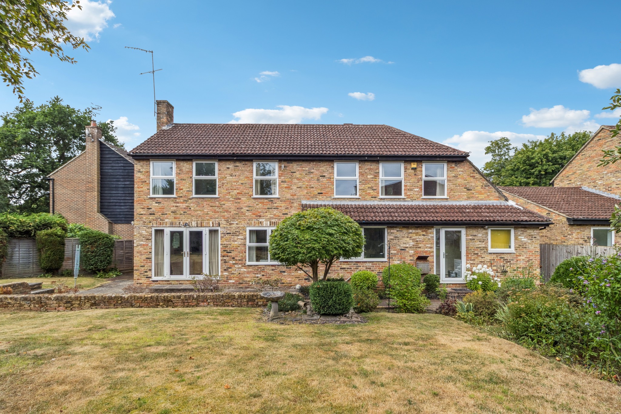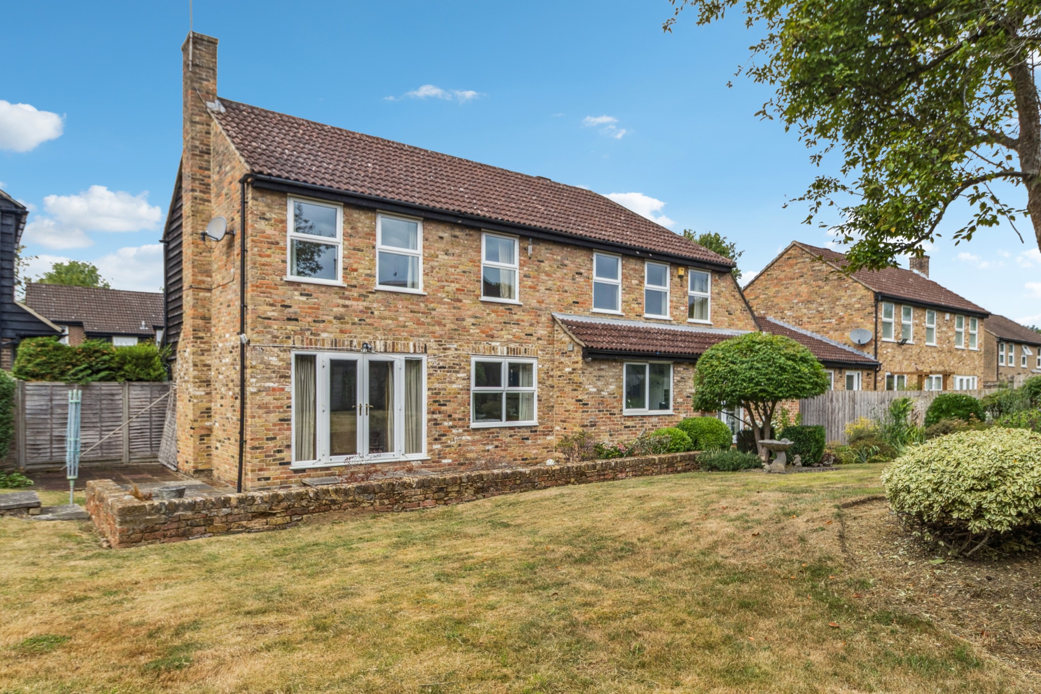 Upstairs, the property features five well-proportioned bedrooms. The main bedroom benefits from fitted wardrobes and an ensuite bathroom, while the family bathroom serves the remaining bedrooms.