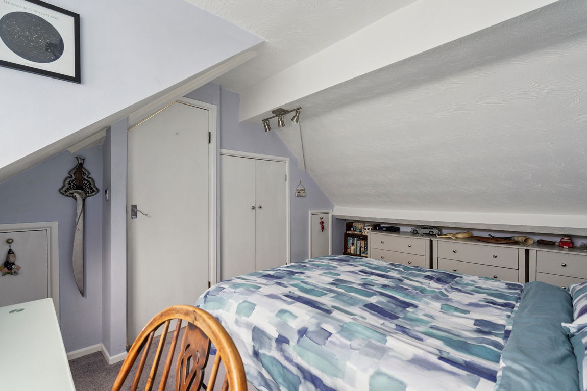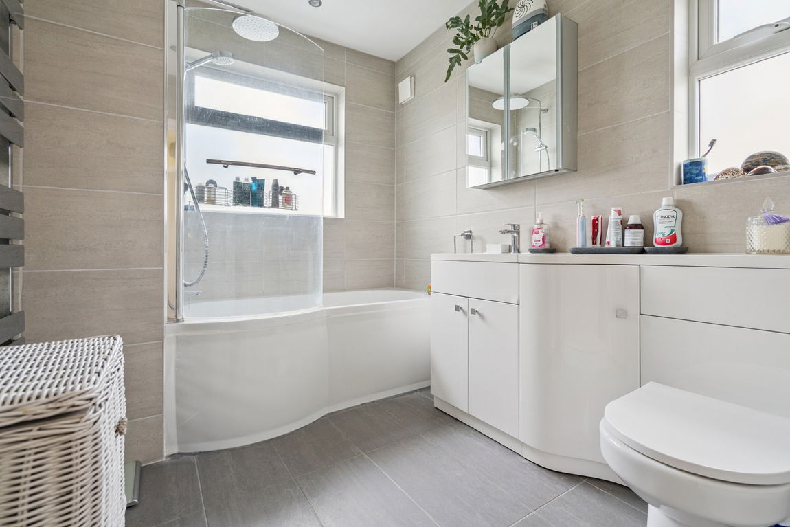 On the first floor, there are two well-proportioned double bedrooms and a generous single bedroom, all benefiting from fitted wardrobes, alongside a contemporary, fully tiled family bathroom with vanity storage. The second floor hosts a further spacious double bedroom, also complete with fitted wardrobes.