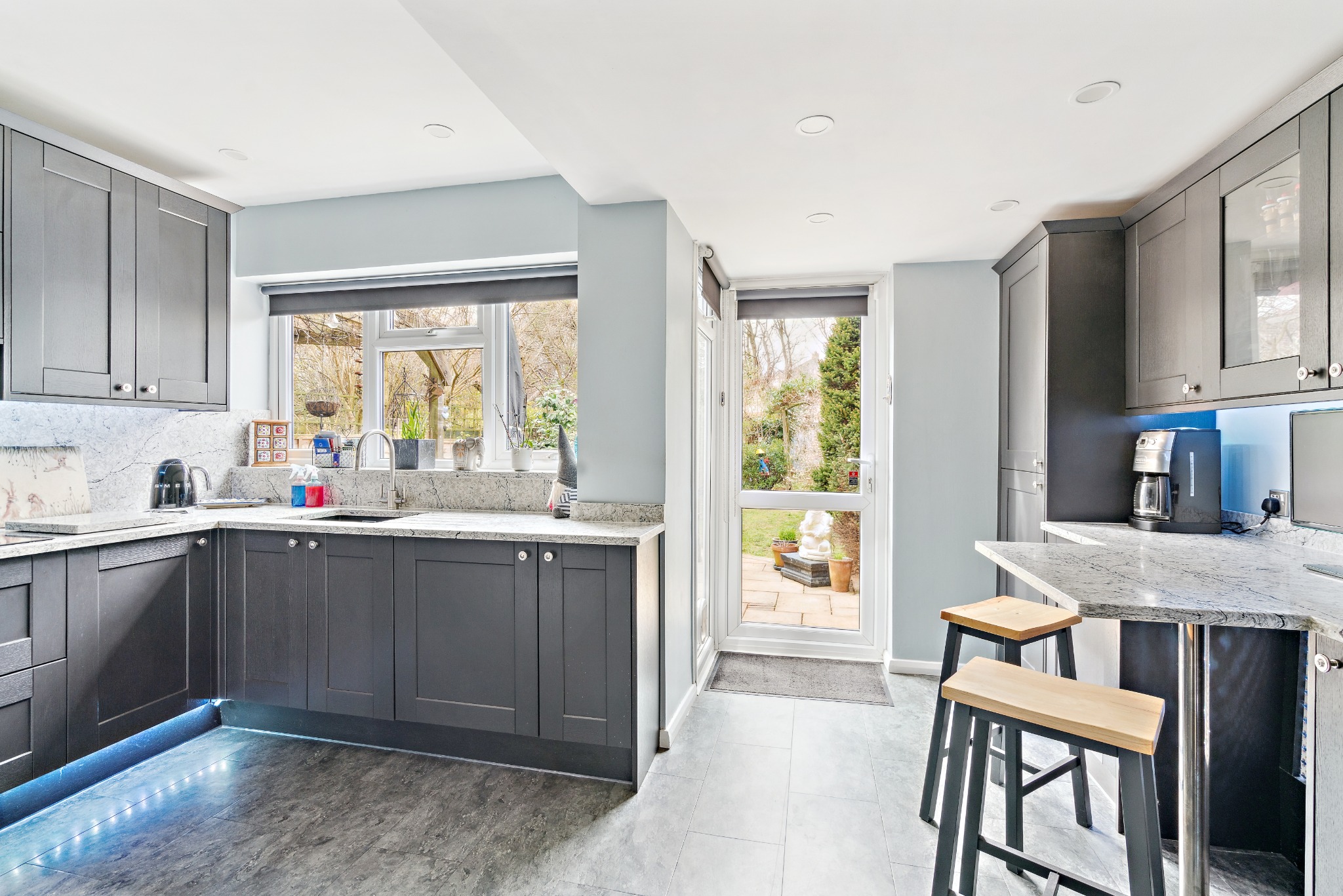 This beautifully presented four-bedroom semi-detached house with a garage and off-street parking offers spacious and stylish living, ideal for families. The property features a bright double-aspect lounge/dining room with a ethanol stove set within a marble surround with downlights, a large bay window, and French doors that open onto the garden. The modern fitted kitchen includes integrated appliances, a breakfast bar, and convenient access to a guest WC and the garage.