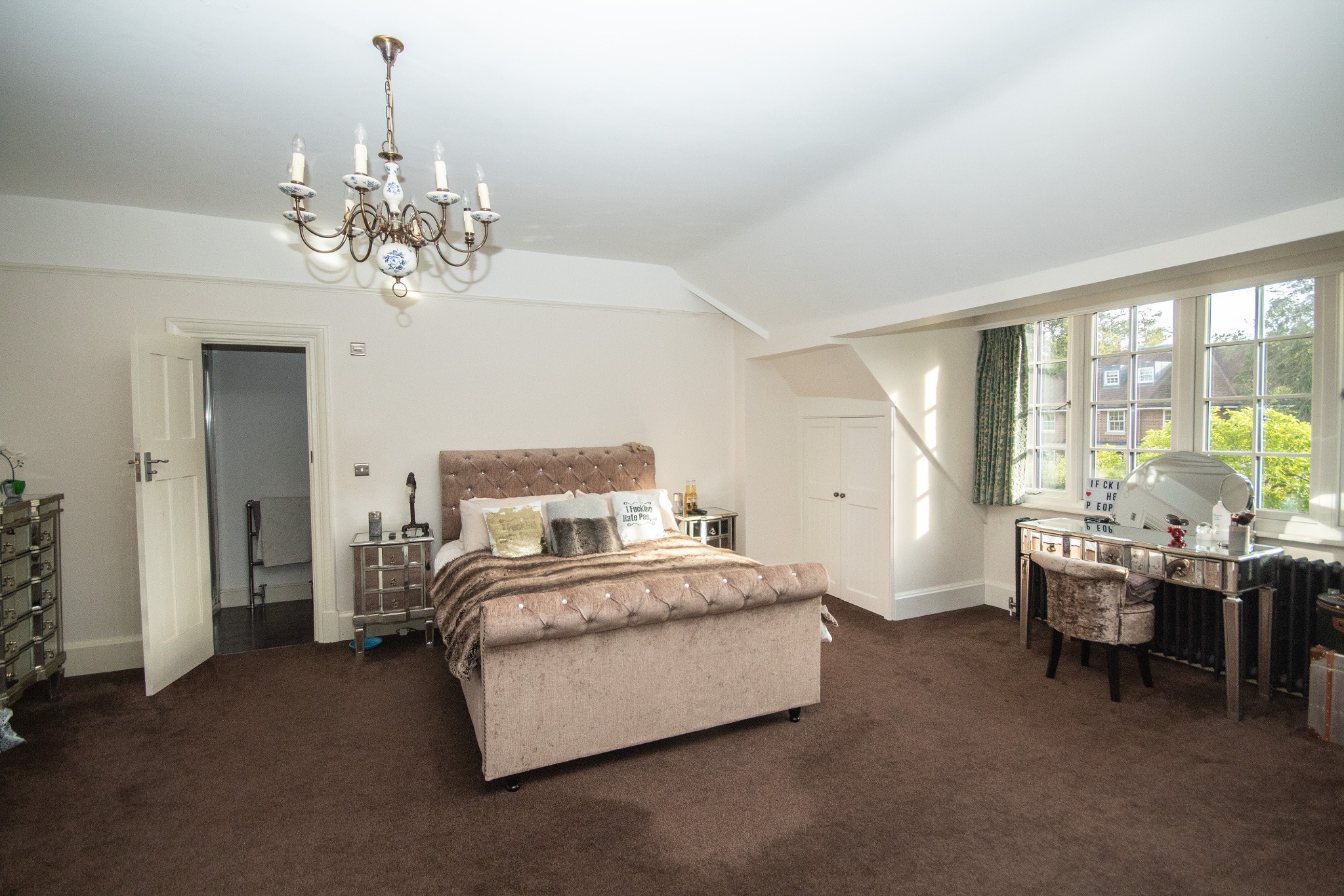 To the second floor are two further spacious bedrooms and ample storage space. Outside the property boasts a large rear garden with a well-manicured lawn surrounded by leafy trees and mature shrubbery. Further benefiting the garden is a brick built fire pit, outdoor catering area and a patio perfect for outside entertaining in the summer months. To the front of the property are beautiful grounds with a sweeping carriage driveway providing ample off street parking.