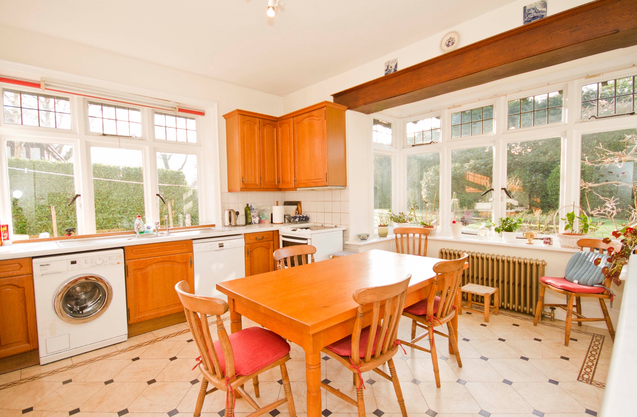 The ground floor comprises a large reception hall allowing access to a spacious lounge featuring an Adam-style fireplace, a guest cloakroom with ample storage space, and a generously-sized dining room that overlooks the flood-lit garden pond. Completing the ground floor is a south-facing kitchen / breakfast room that is flooded with natural light, and has the potential to be extended. To the first floor there are four large double bedrooms with one benefitting from an en-suite shower room, and a family bathroom.