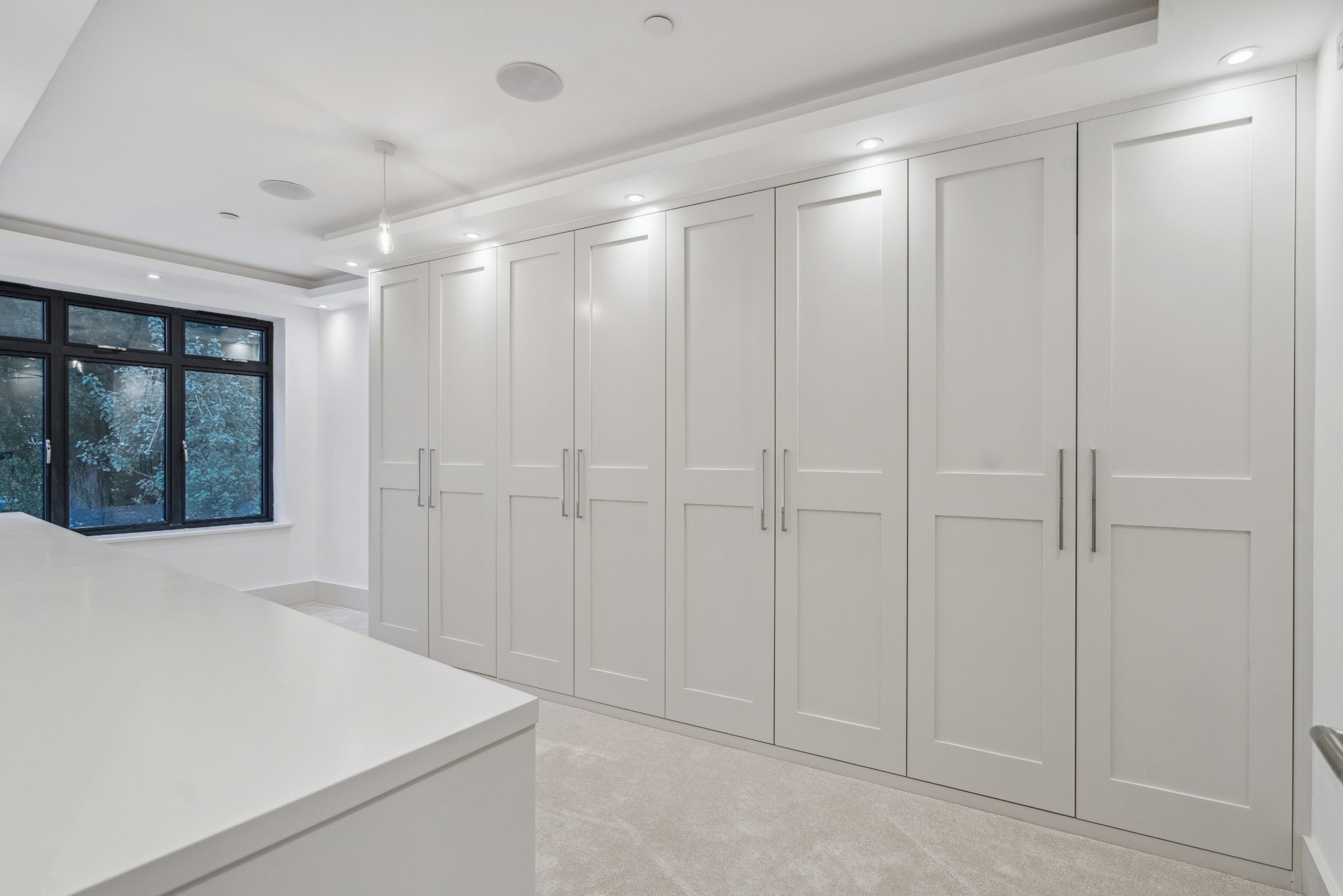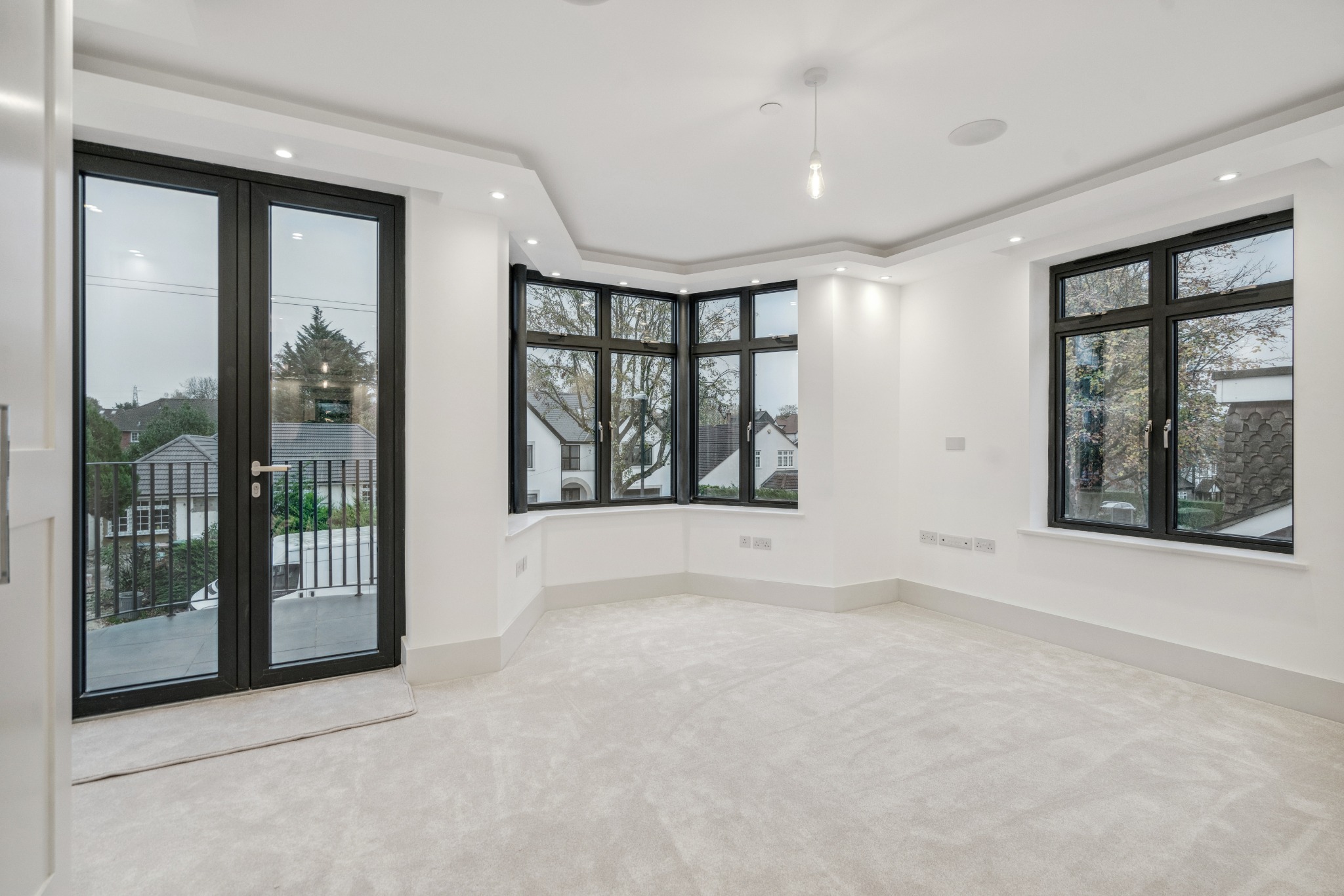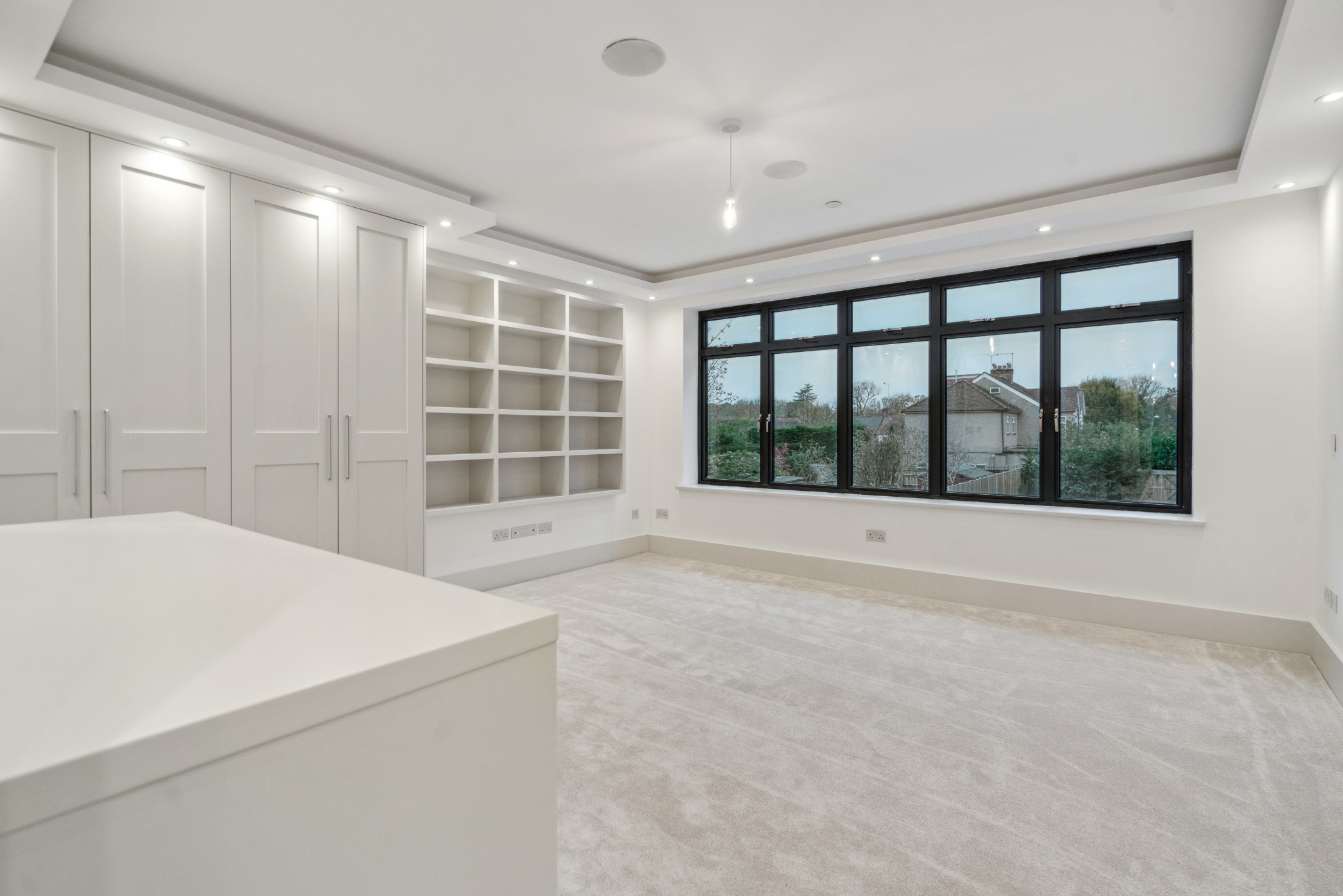 Throughout the house there are Sonos speakers, 4-Lights System, floor-to-ceiling doors, floating Prime Oak stairs with glass balustrades, Schuco aluminium windows and doors, and Air Conditioning Ducting throughout. Further benefits include control alarm panels, Rako Lighting System Hub, commercial level Water softener, x2 Mega Flows, x2 Valiant boilers with Magna clean, CCTV, Gas fireplace, wet underfloor heating, heated towel rails to all bathrooms, an electrical garage door, and x2 garage and x2 external EV charging points.