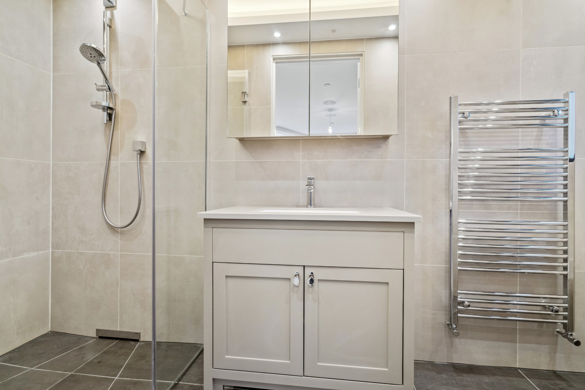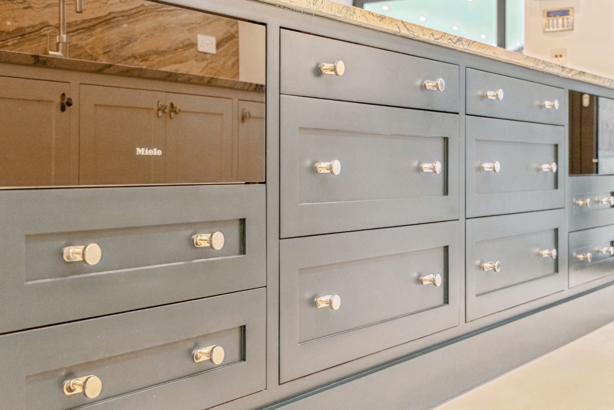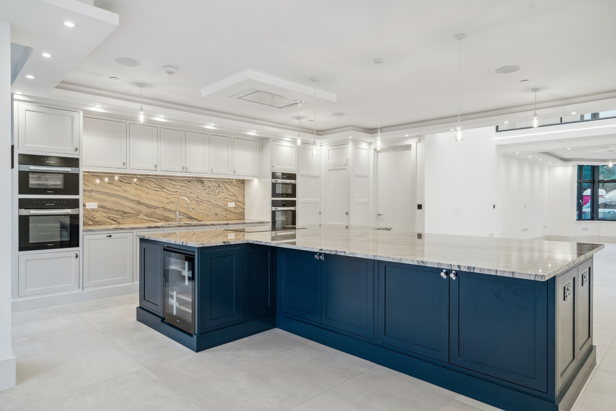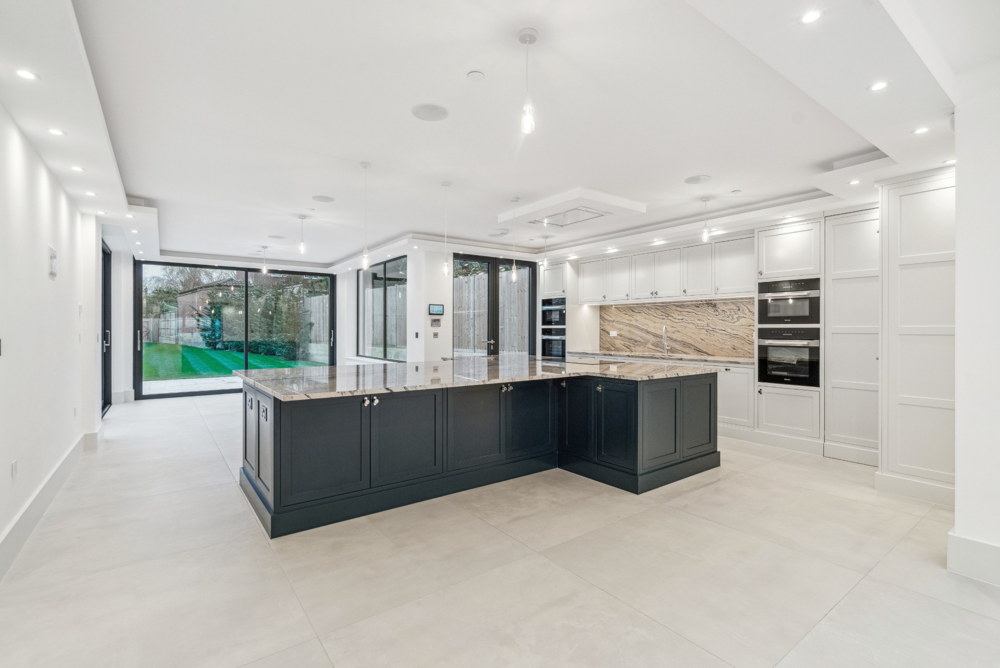 The kitchen is bespoke, hand built with Granite work surfaces, Miele kitchen appliances, a Quooker tap, x2 Ovens, Induction Hob, Microwave Oven, Steam Oven, full length fridge & freezer, a waste disposer, x2 warming drawers, x2 dishwashers, and a Wine cooler. There is also an adjoining utility room / spice kitchen of the same standard. The bathrooms boast hand-made Vanity units and Hansgros fittings, with speakers in the en-suites. Minoli Italian tiles and luxury carpets adorn the floor surfaces.