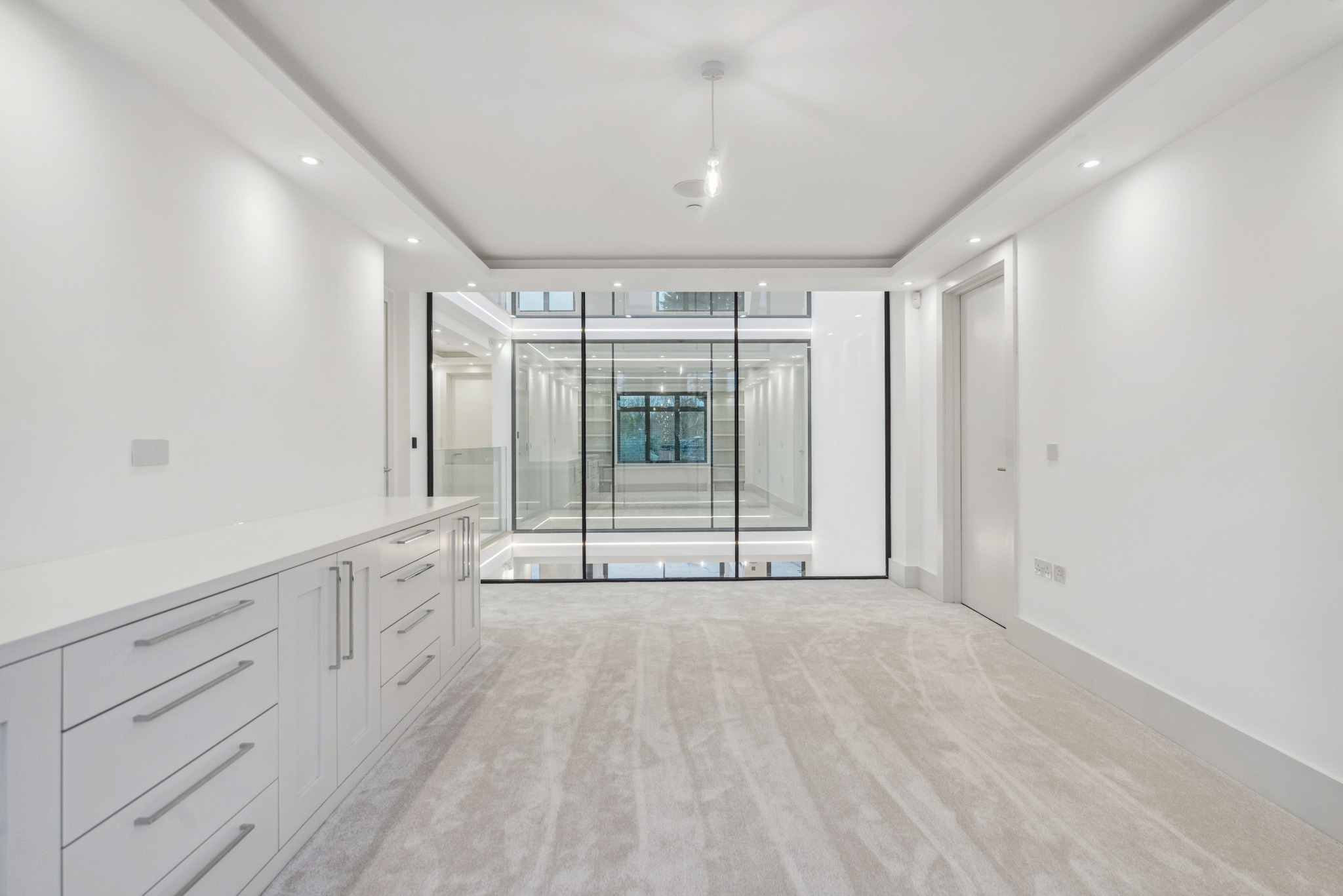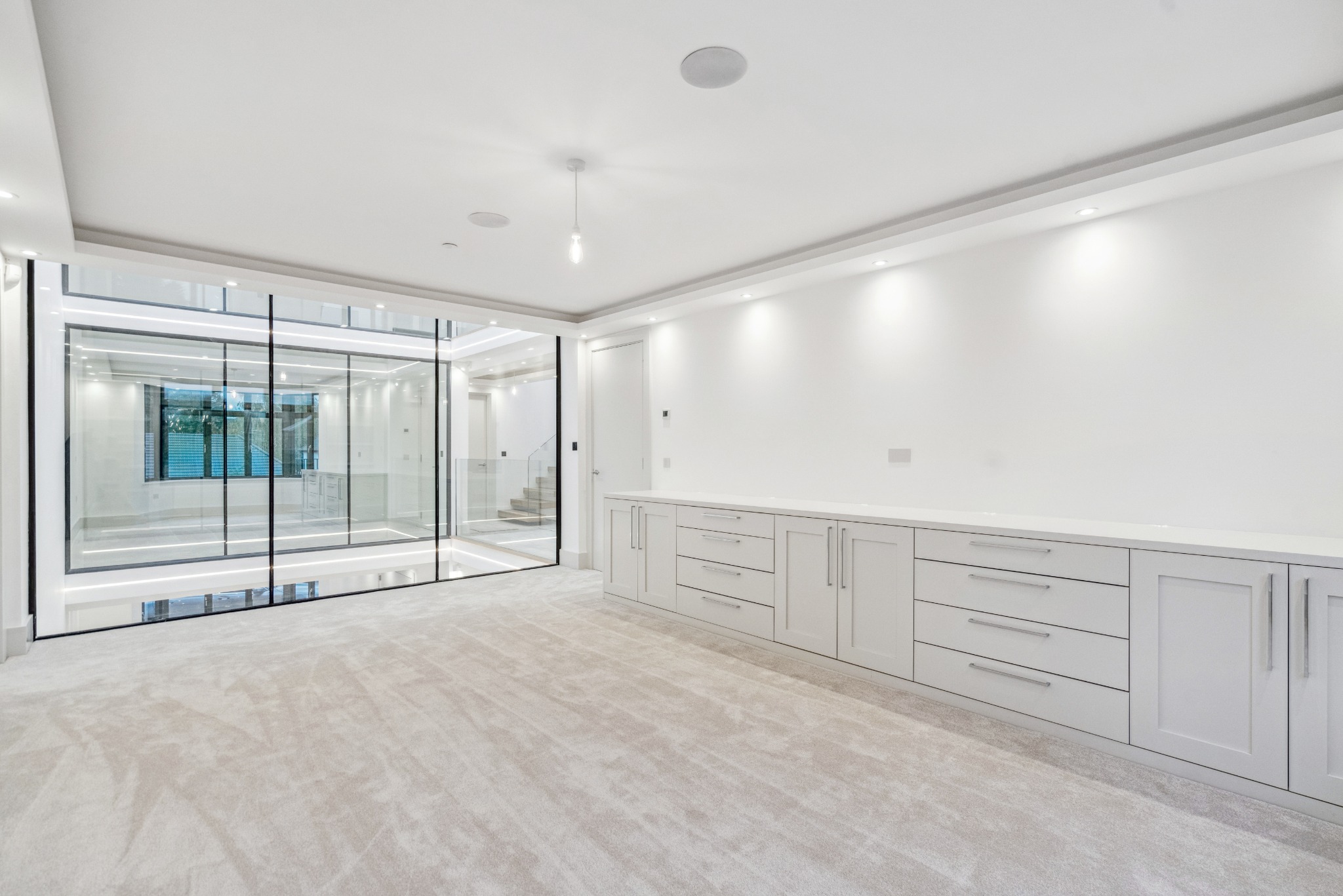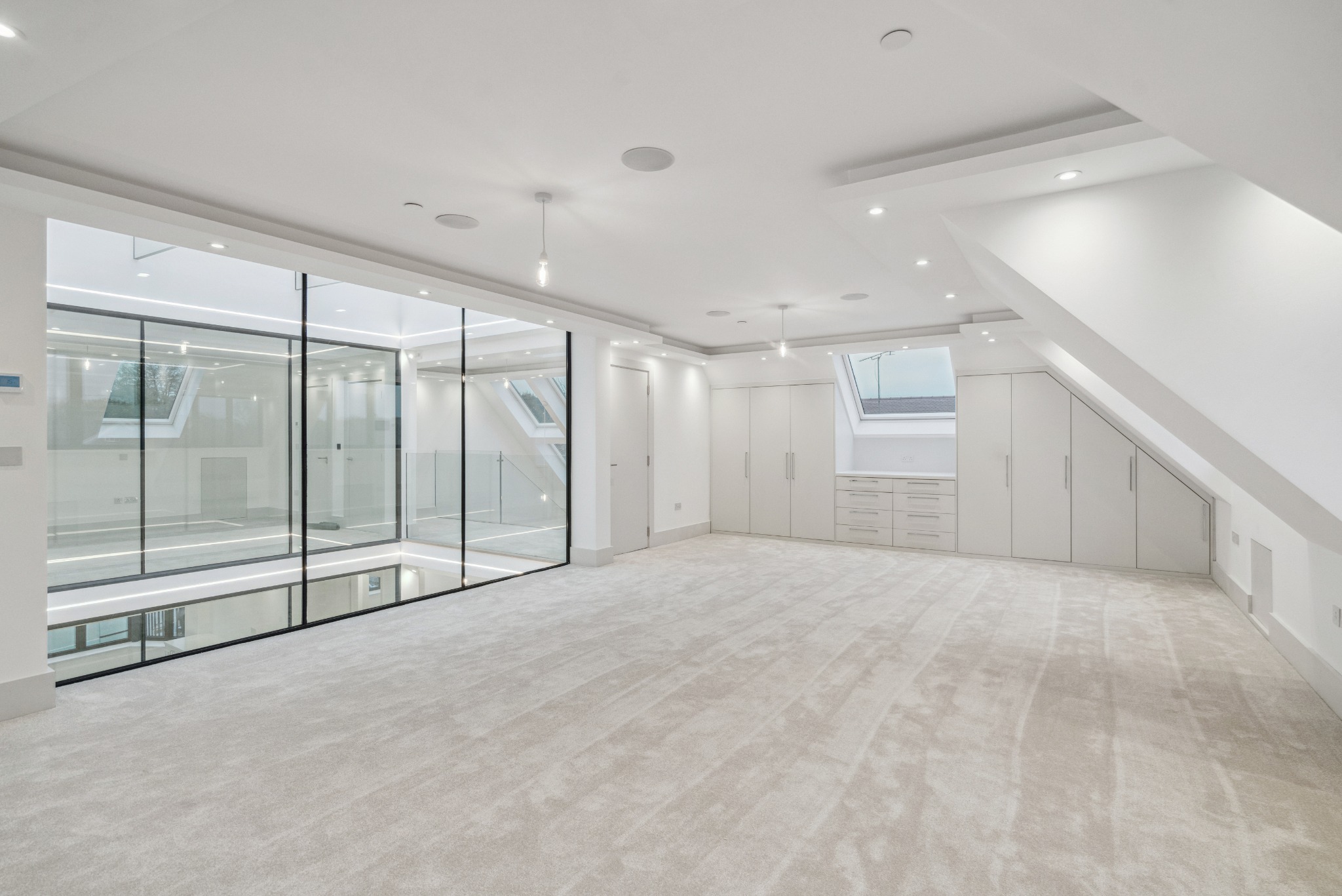 An exceptional seven bedroom, seven bathroom, modern-day family home offering 5,980 sq. ft of luxurious accommodation across three floors, complete with neutral decor, tasteful finishes and high-specification appliances. The property has been thoughtfully designed, with no expense spared, to create an exquisite home comprising two large reception rooms, a kitchen/diner, a utility room/garage, seven bedrooms, two of which are accompanied by dressing rooms, and seven bath/shower rooms. A unique feature of this home is the triple-storey Atria, which can be enjoyed from all floors of the home, including four of the bedrooms which have floor-to-ceiling glass walls, and Rako lighting & blind/curtain control system.