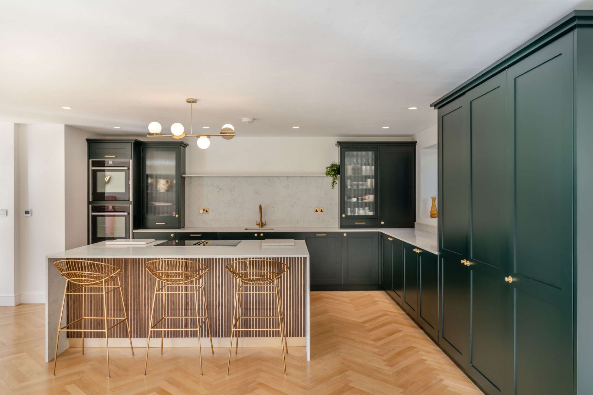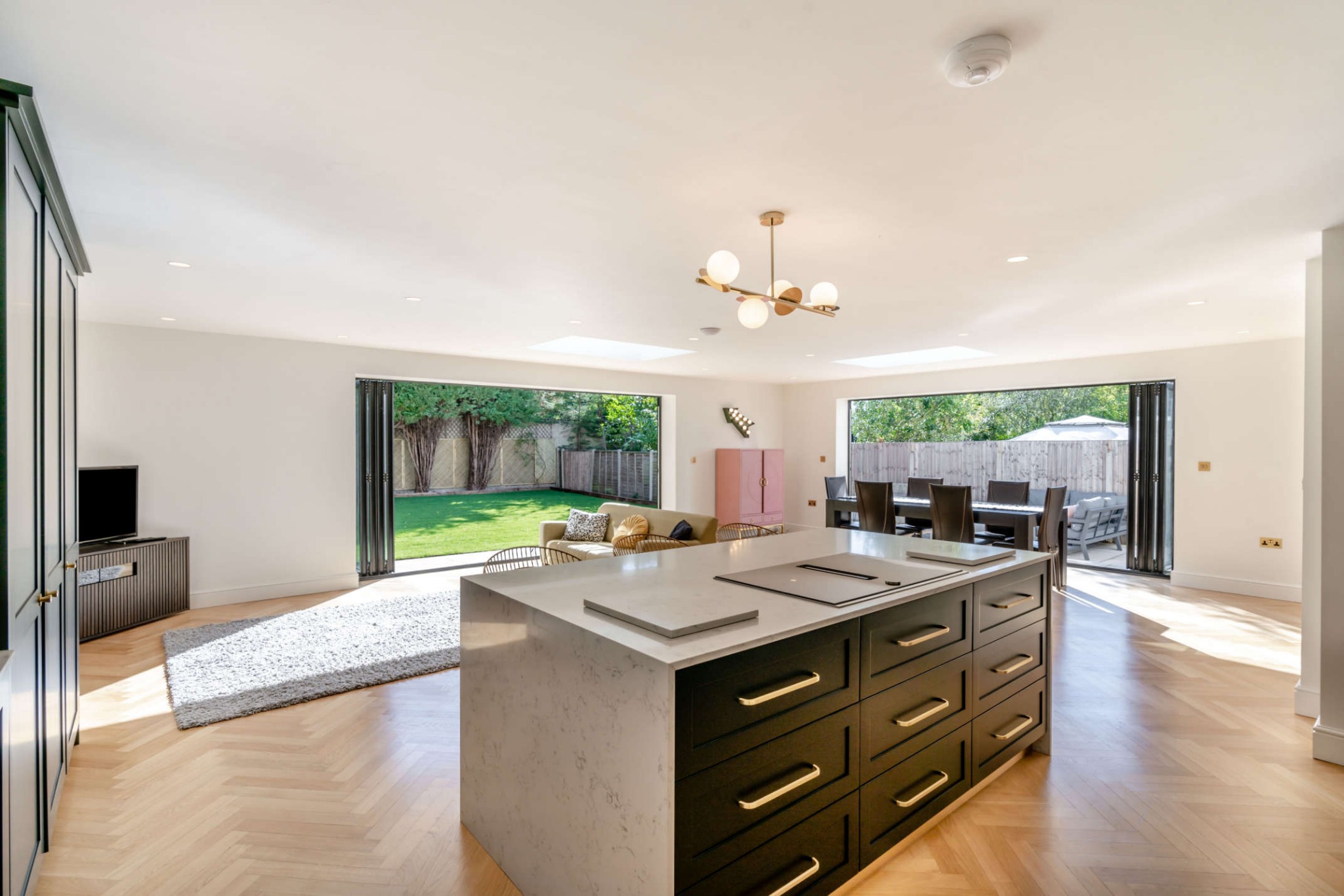 The ground floor comprises a grand entrance hallway with stairs to the first floor and access to all the main living areas. There is a remarkable, rear aspect kitchen/dining/living room featuring two sets of bi-folding doors as well as two sky-lights which fill the room with plenty of natural light. A tasteful, high-spec bespoke kitchen is the main feature of the room with a variety of fitted units providing ample storage space, integrated appliances, and a large kitchen island, with a sitting area and a dining area overlooking the garden. A generous utility room offers additional units/storage space, with plumbing in place for a washing machine and tumble dryer. Completing the ground floor is a welcoming lounge with a feature fireplace, a study with bi-folding doors opening out to the garden, and a guest cloakroom.
