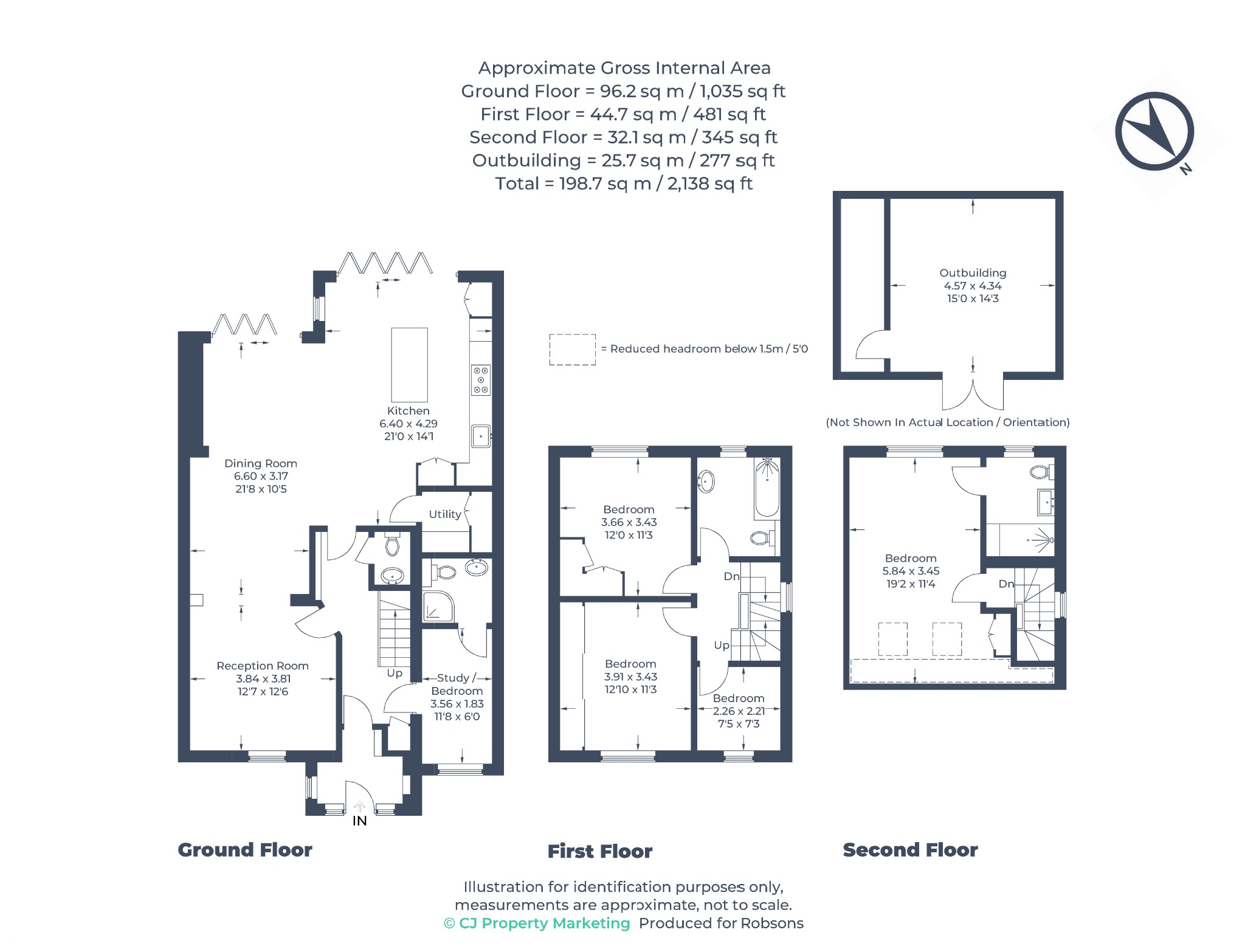 Two well-appointed double bedrooms are located on the first floor (both with fitted wardrobes), along with a single bedroom and a three-piece family bathroom. The second floor hosts the principal bedroom with a luxury en-suite shower room.