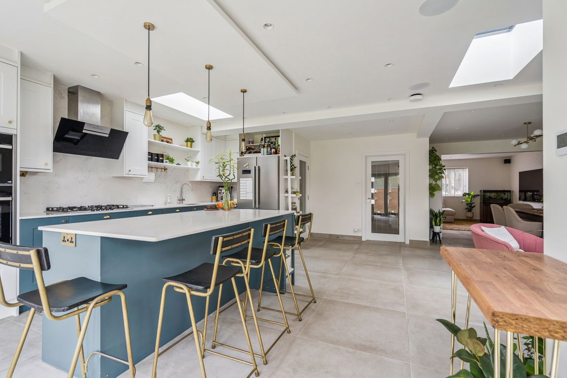 A stylish and beautifully presented four/five bedroom, three bathroom, extended property offering on-trend open-plan living, with the added benefit of an outbuilding, ideal for a garden office or home gym. This superb home provides a total of 2,138sq. ft., perfect for growing families, with the convenience of local amenities, schools and transport links nearby.