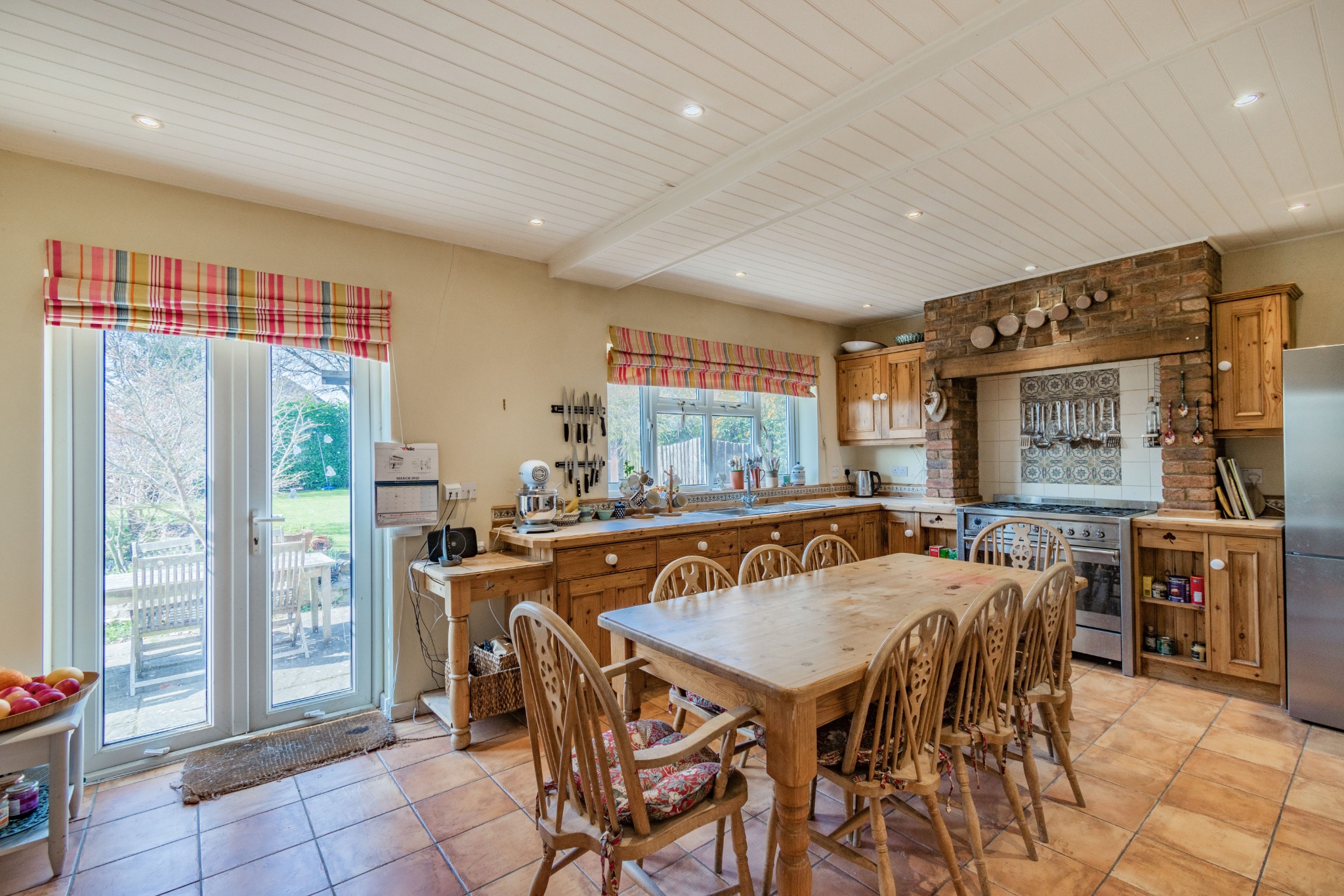 The porch leads into a sizeable entrance hall with a coats cupboard and stairs to the first floor. There is a bright kitchen/breakfast room with French doors to the garden and access to the dining room, a storage cupboard and the utility room which has a door to the side of the property. The reception room/dining room is triple aspect with French doors to the rear garden and a feature fireplace. The ground floor is complemented by a study, guest cloakroom and a storage cupboard.