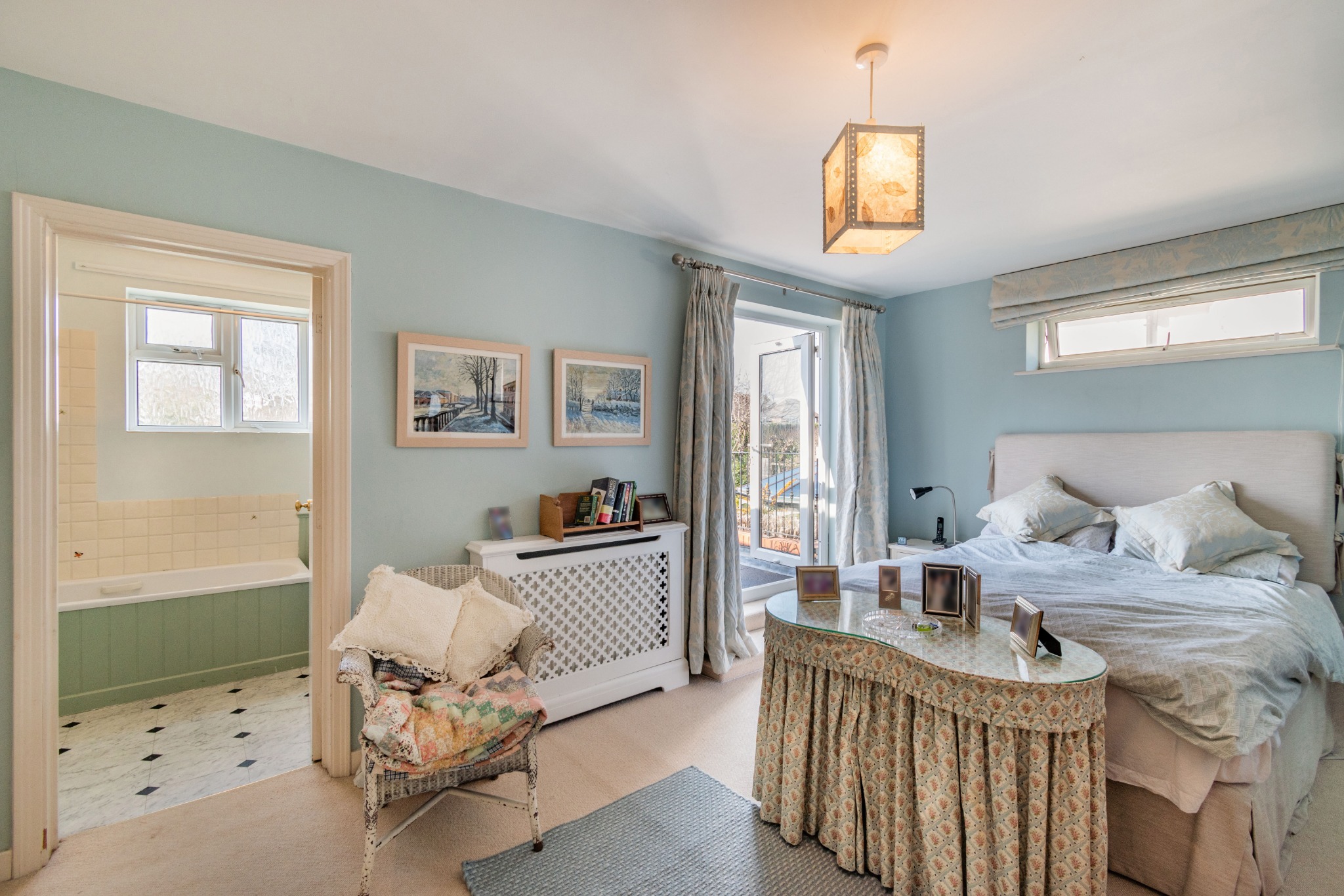 To the first floor is a large principal bedroom with an en-suite bathroom, fitted wardrobes and balcony overlooking the rear garden. The generous guest bedroom also has an en-suite bathroom. There are two additional bedrooms, a family shower room and access to a generous loft space reached via a drop-down ladder.