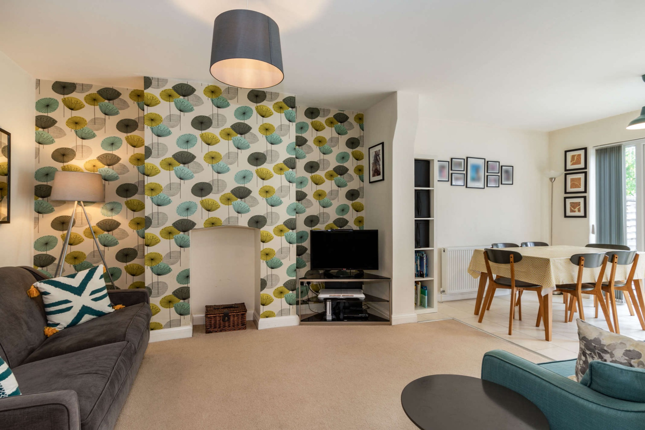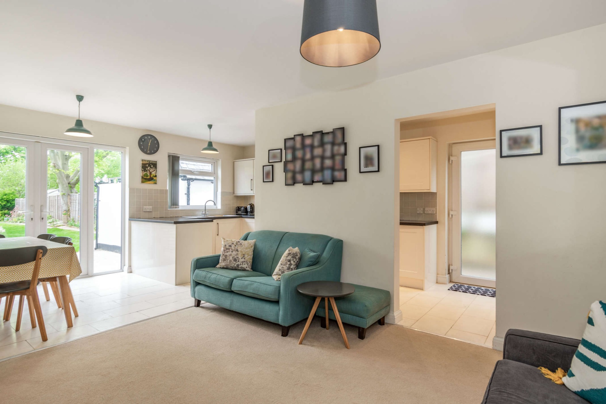 area. This beautiful home has been thoughtfully extended and modernised creating a spacious, light filled interior, comprising an entrance hall with ground ?oor shower room/WC, and a lounge with bay window to the front aspect. The family room to the rear flows through to open plan kitchen/diner, fitted with white high gloss units, contrasting worktops and integrated appliances. To the first ?oor there are three bedrooms, the master benefiting from a range of fitted wardrobes, plus a modern family bathroom. The rear garden extends to in excess of 160' and is mostly laid to lawn with mature shrub and flowerbed borders, with patio seating area and footpath leading to a recently constructed timber cabin. To the front of the property the driveway provides off street parking for two vehicles.