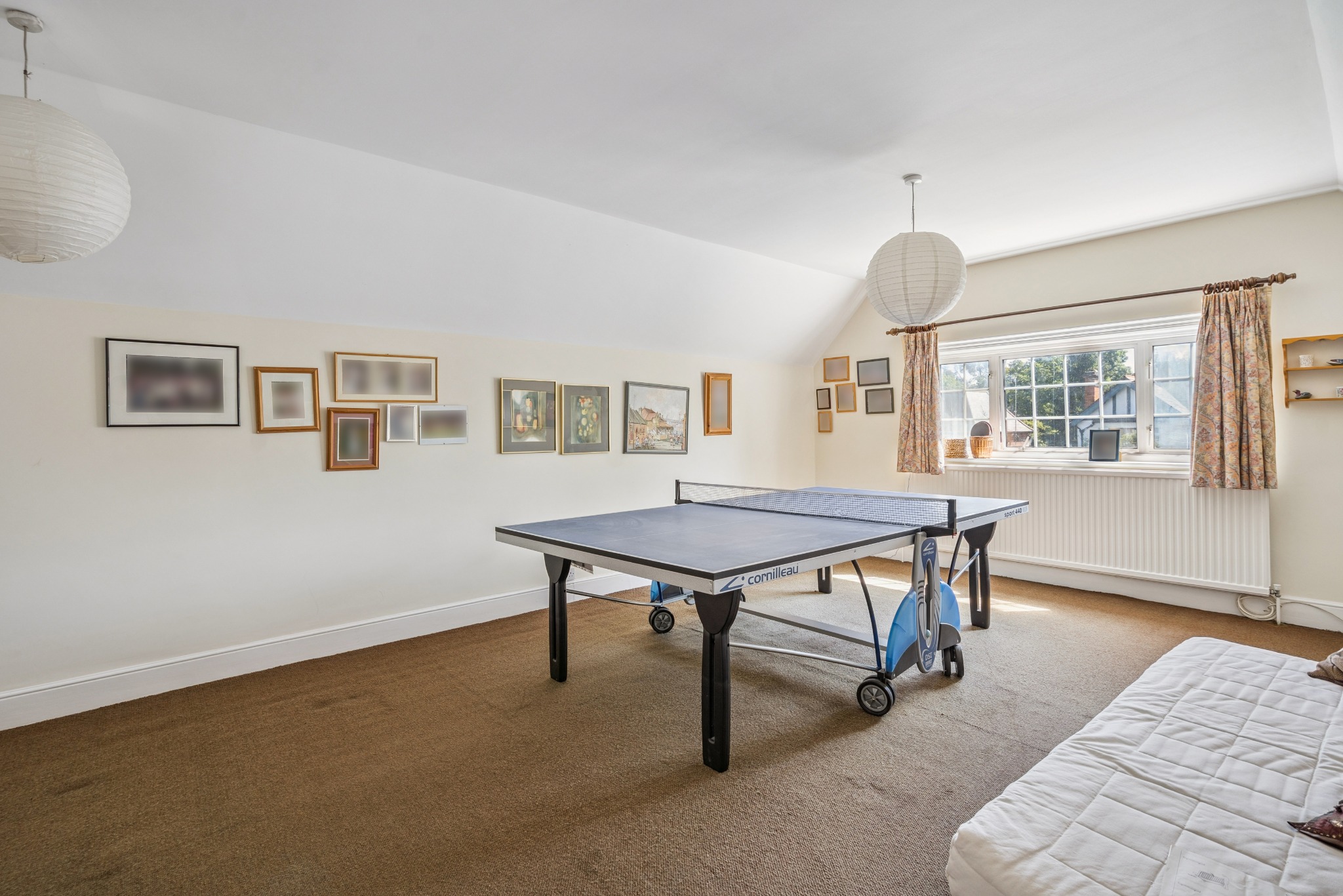 Five good-sized double bedrooms are all located on the first floor, with the master bedroom boasting an en-suite bathroom, a dressing room, and a private balcony overlooking the garden. There is a four-piece family bathroom, and a large games room also on the first floor, with the second floor hosting two additional double bedrooms. The games room links to two of the bedrooms, and can be accessed via the garage also.
