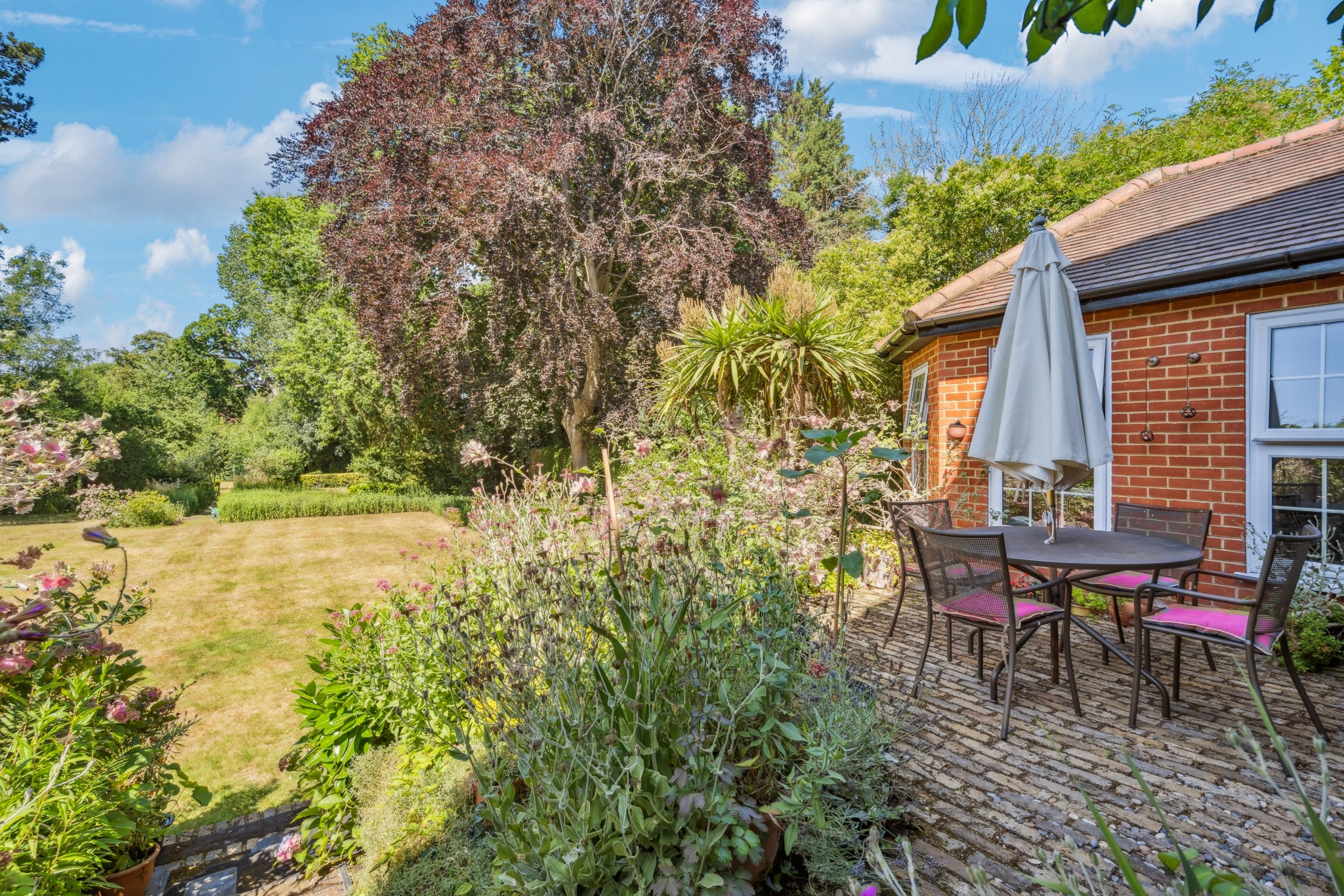 The generous plot (0.74 acres) allows for a spectacular rear garden, with a beautifully laid lawn and a vast variety of established shrubs, trees and maintained flowerbeds. A patio area provides the perfect setting for alfresco dining, with the garden overall providing a peaceful and private setting. Off-street parking is available at the front of the property, via a carriage driveway, along with a garage.