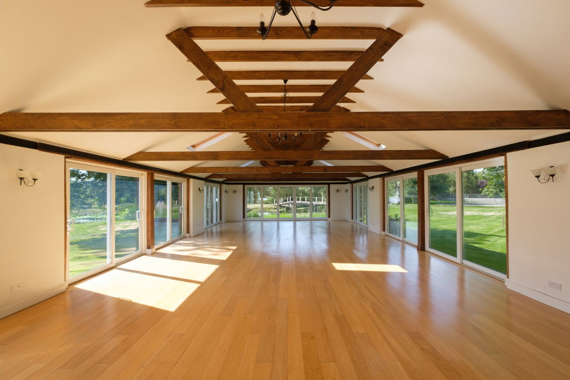 This unique and flexible estate has a tranquil setting with extensive grounds and gardens of approximately 6 acres, with bridges over the river running through it and surrounded by countryside and lakes, together with ample parking for owners and visitors.