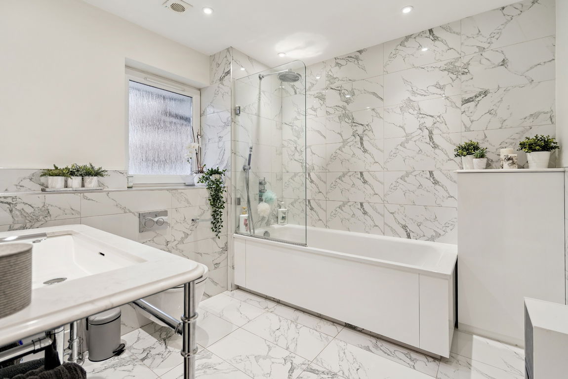 Stairs from the hallway lead to a spacious landing on the upper floor, where you’ll find the principal bedroom with fitted wardrobes and a modern en-suite shower room. There is a further double bedroom, also benefiting from fitted wardrobes, and a luxurious, spacious family bathroom completing the accommodation.