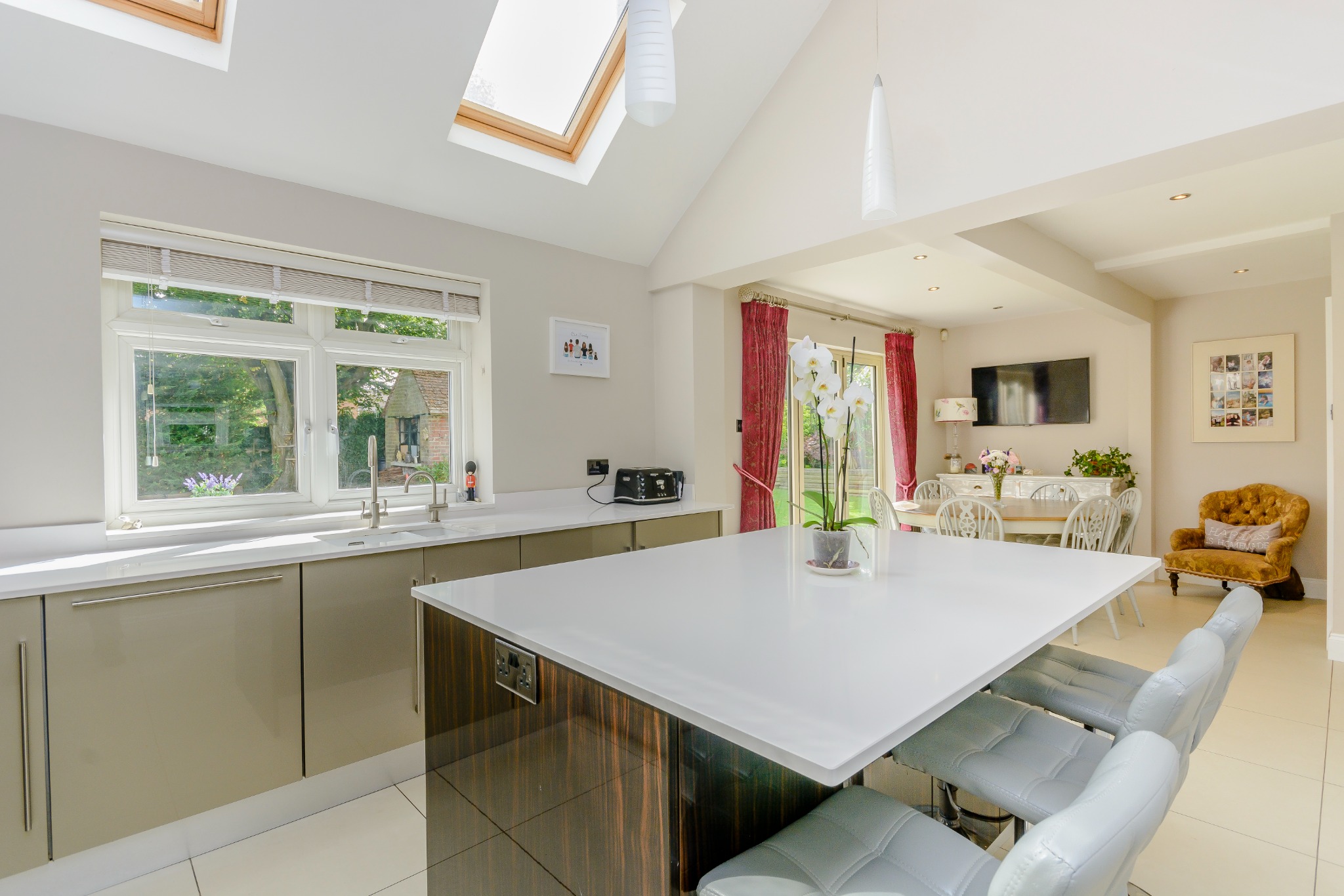 An extremely attractive, double fronted 5 bedroom detached property, situated midway between Amersham and Little Chalfont, providing light and spacious accommodation in excess of 1,900 sq ft. The property would be ideally suited for a growing family, with a selection of rooms arranged over three levels, and featuring a contemporary, part vaulted kitchen with folding doors onto the garden and a fantastic double aspect sitting room, which includes westerly facing box bay window. Garage, driveway and garden (approx. 65ft x 50ft).