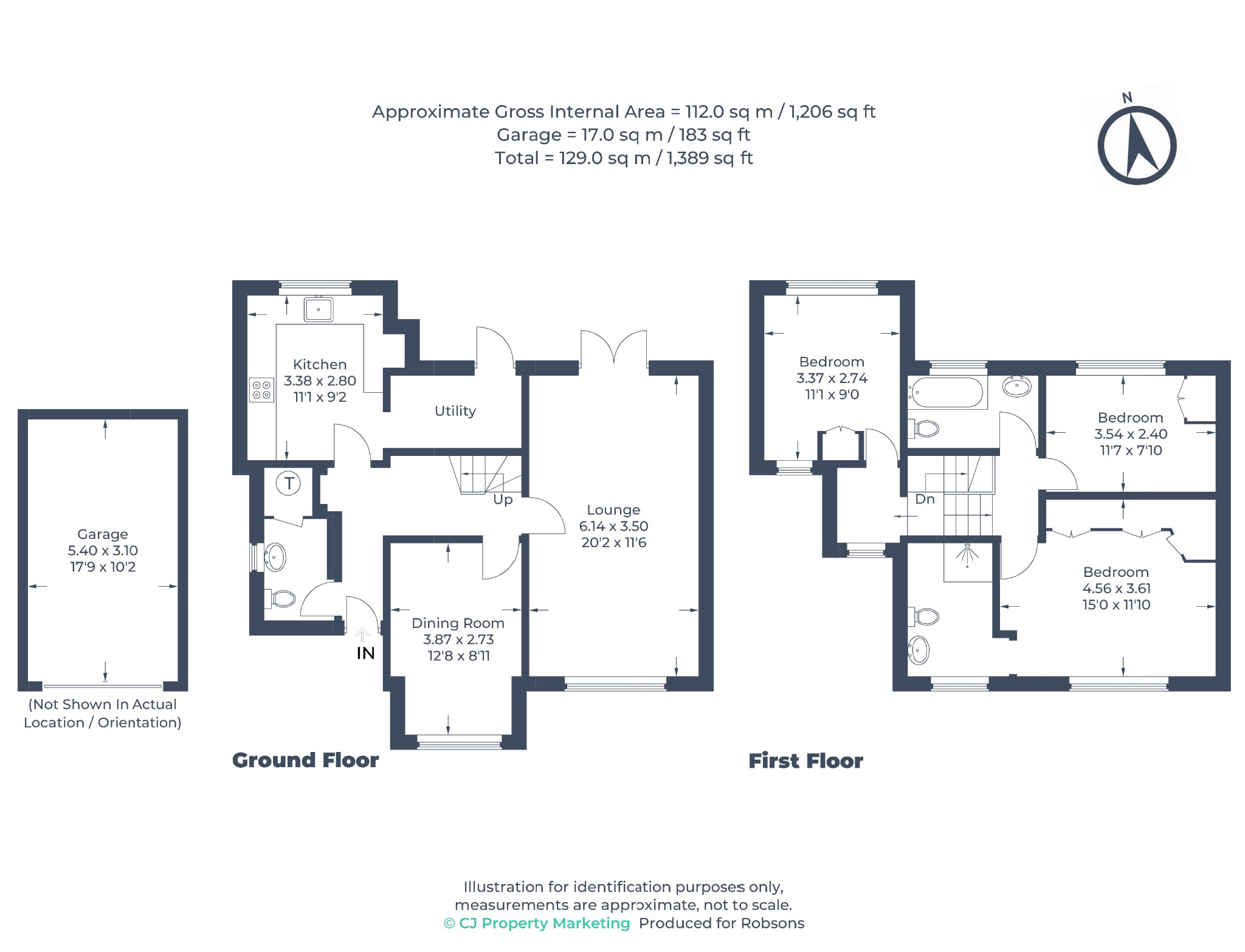 The ground floor features a spacious living room with doors opening onto the rear garden, a separate dining room, a well-appointed kitchen with a utility room, and a downstairs w/c.