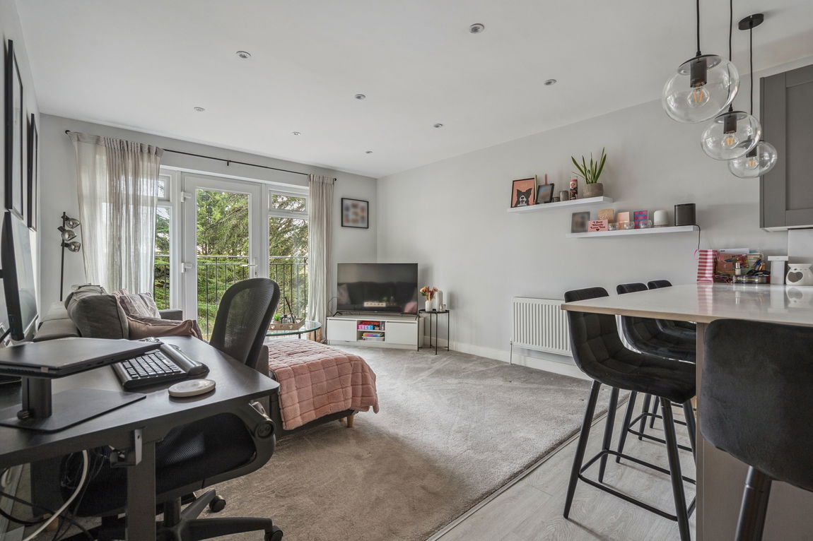 The property welcomes you with an inviting entrance hallway leading into a light and bright open-plan reception room and kitchen. The living area benefits from French doors opening onto a charming Juliette balcony, allowing natural light to flood the space and creating an airy, contemporary feel.