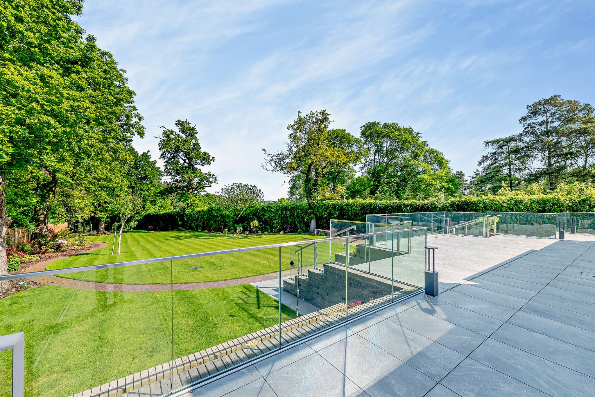 Crowning this stunning home is a first floor recreation room/study, and outside terrace with 360 degree views of surrounding countryside, Rickmansworth town centre and Moor Park golf course. Occupying a half acre plot, the gated entrance reveals a generous driveway providing secure off street parking for multiple vehicles, and access to an integral double garage. To the rear is a raised tiled terrace with glass balustrades and steps down to a well-tended lawn extending to approximately 190 feet in length, with flowerbed borders.