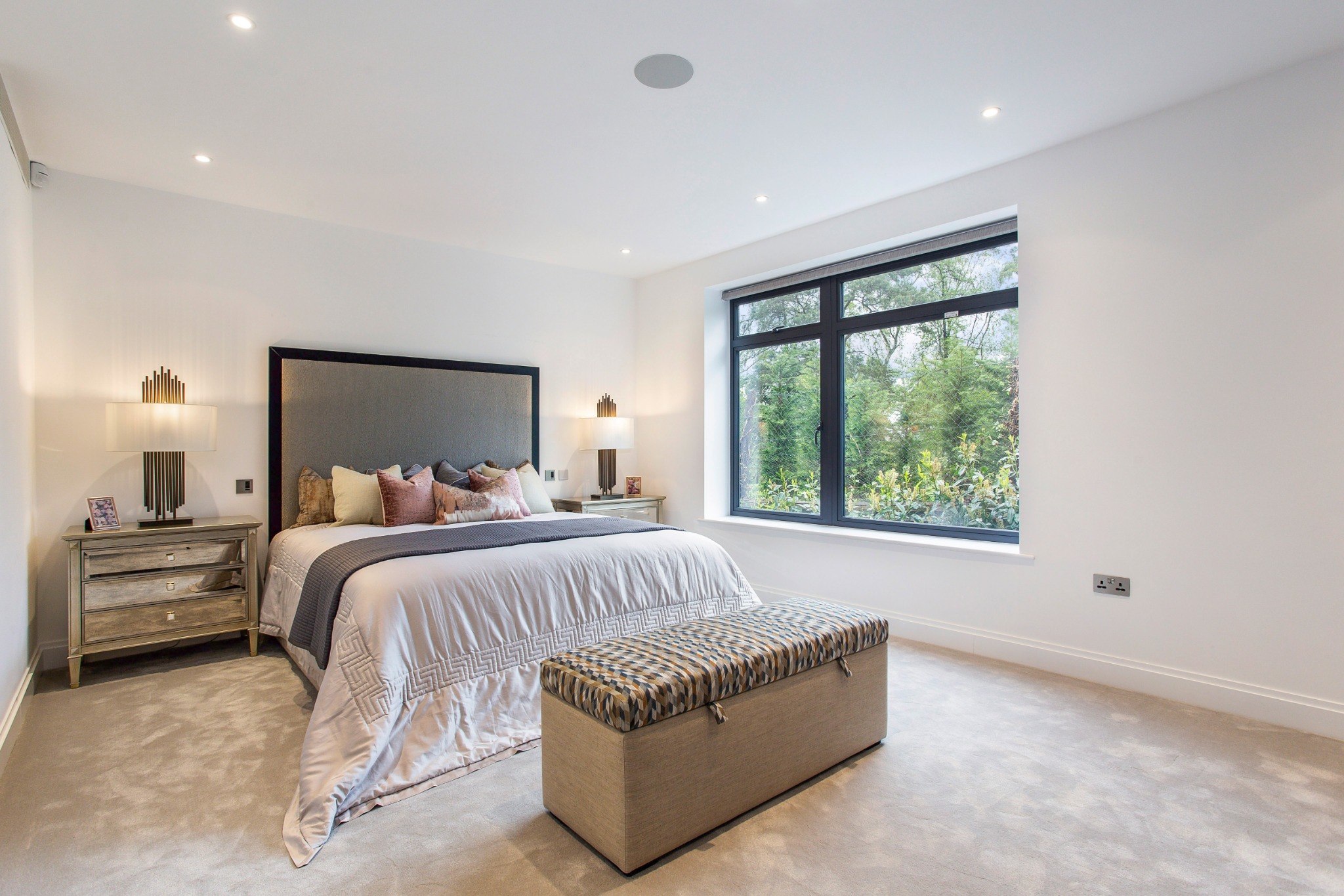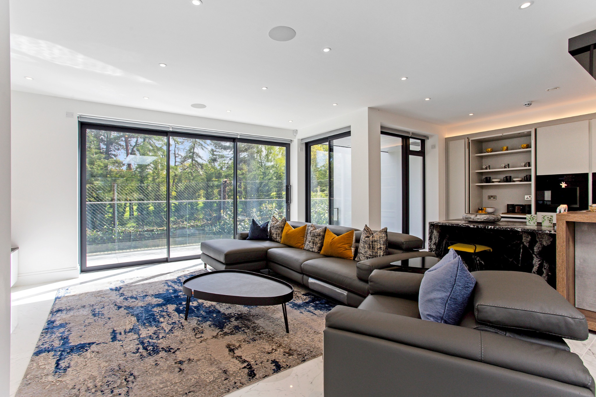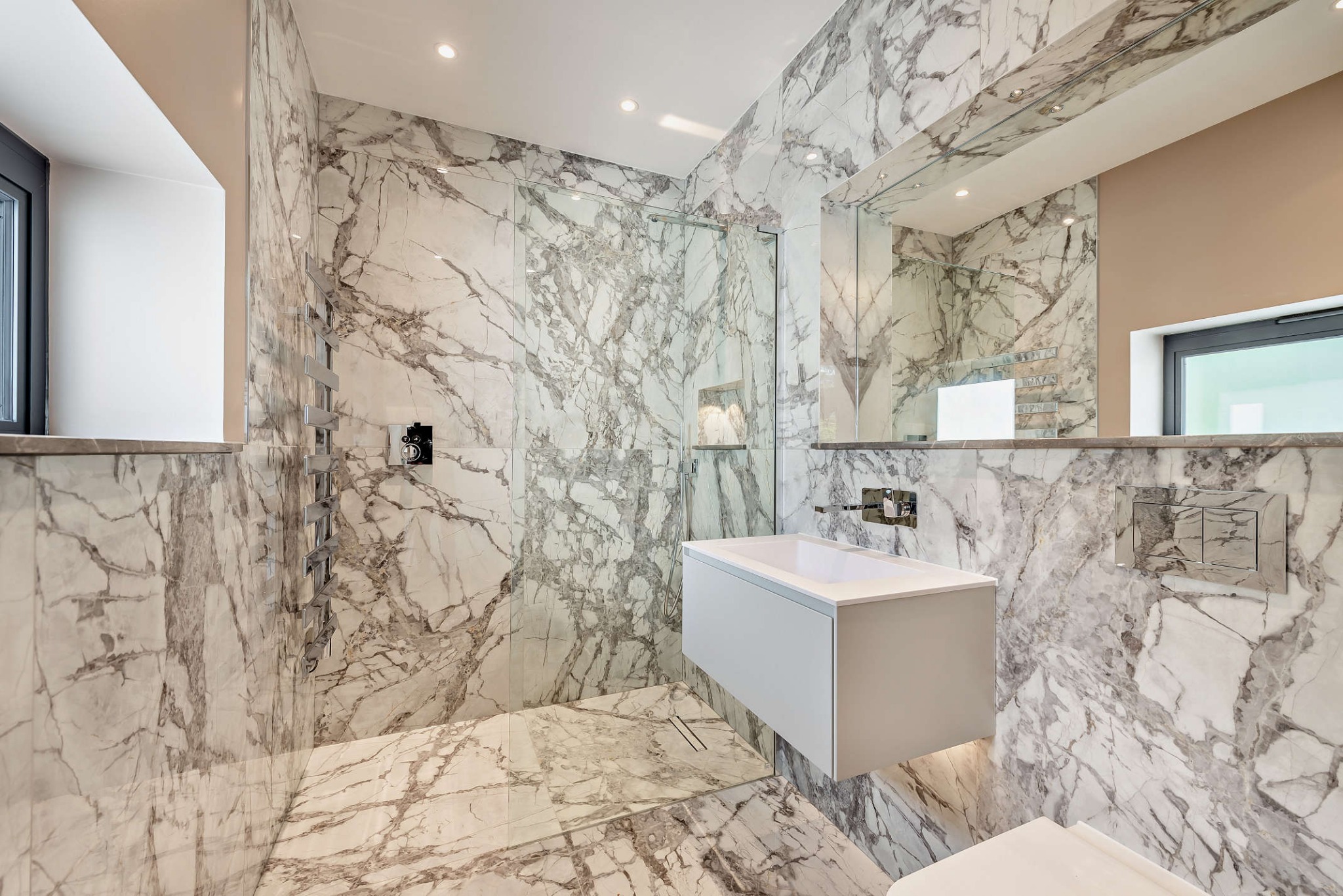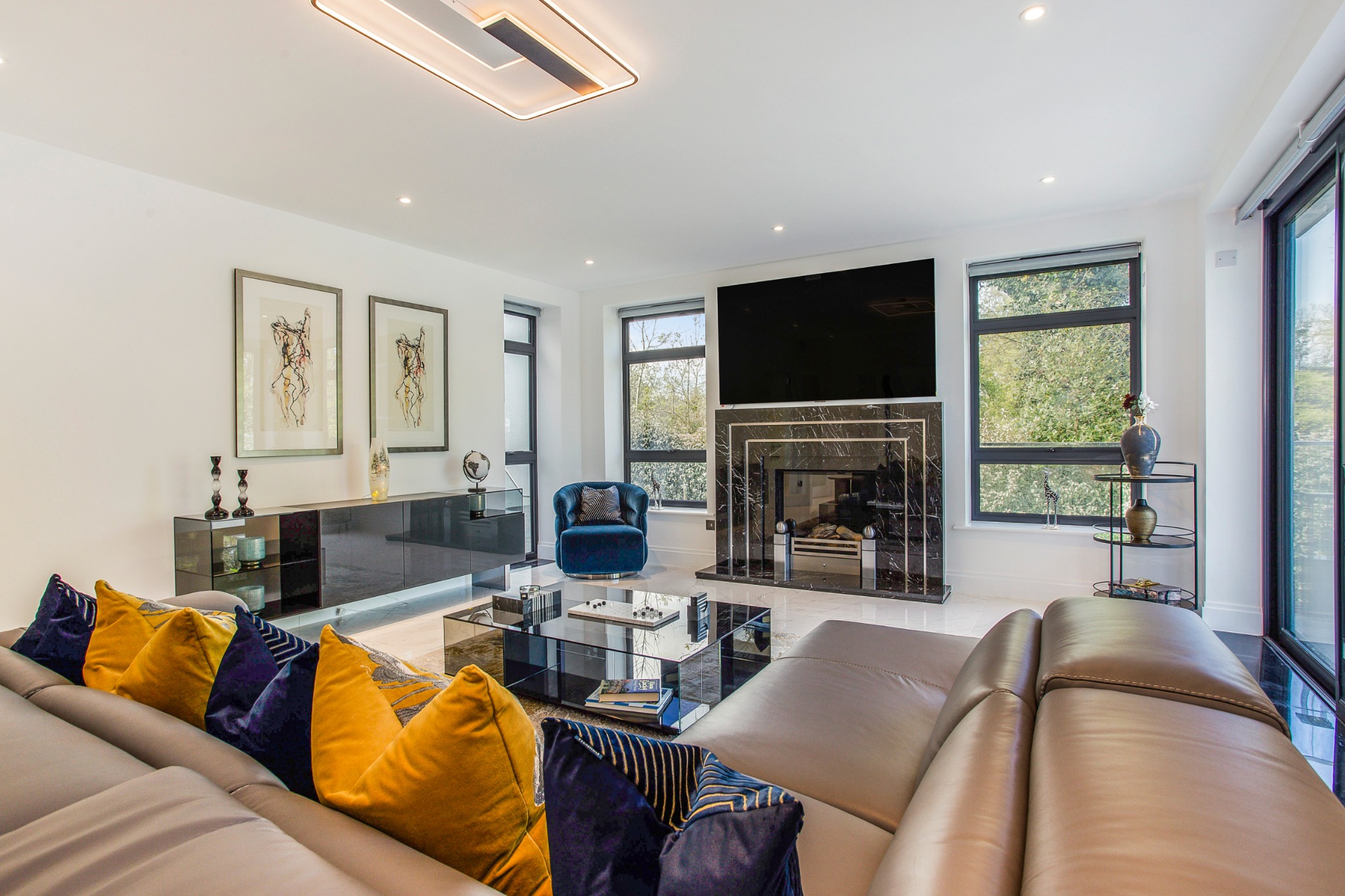 There are four further double bedrooms, all with fitted wardrobes and ensuite shower rooms. The lower ground floor, designed with leisure and entertaining in mind, offers a spacious inner lobby with kitchenette, opening into an air-conditioned games/cinema room with bi-fold doors to an outer courtyard. After using the gym, you can enjoy the steam room and sauna, plus a shower room and wc. Completing the lower ground floor is a plant room for the heating and airflow systems, and a server room for the electronic systems.