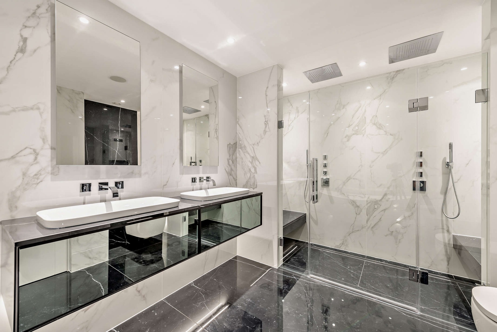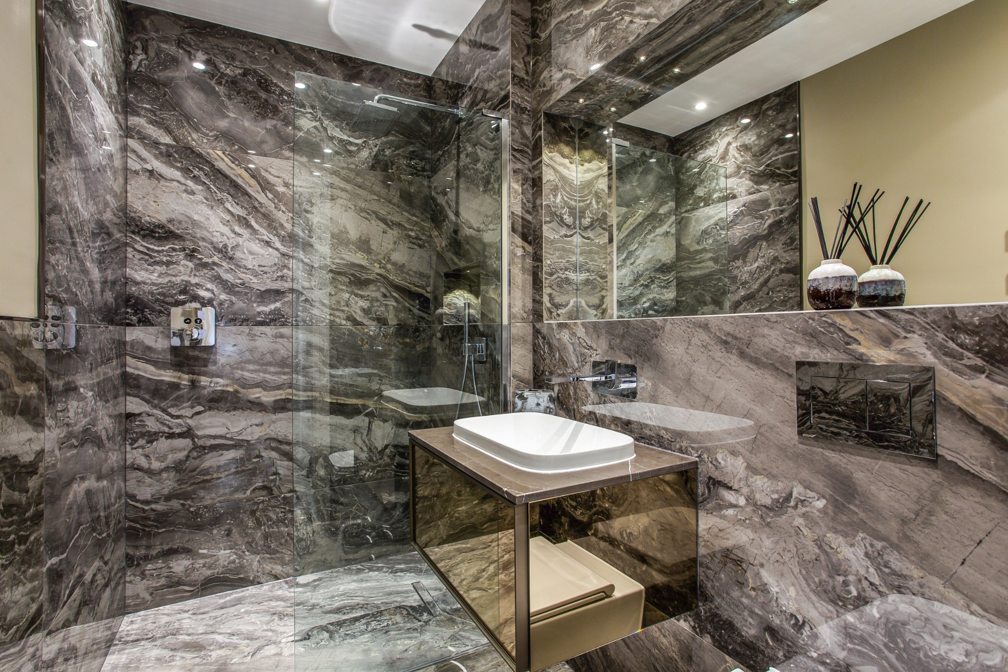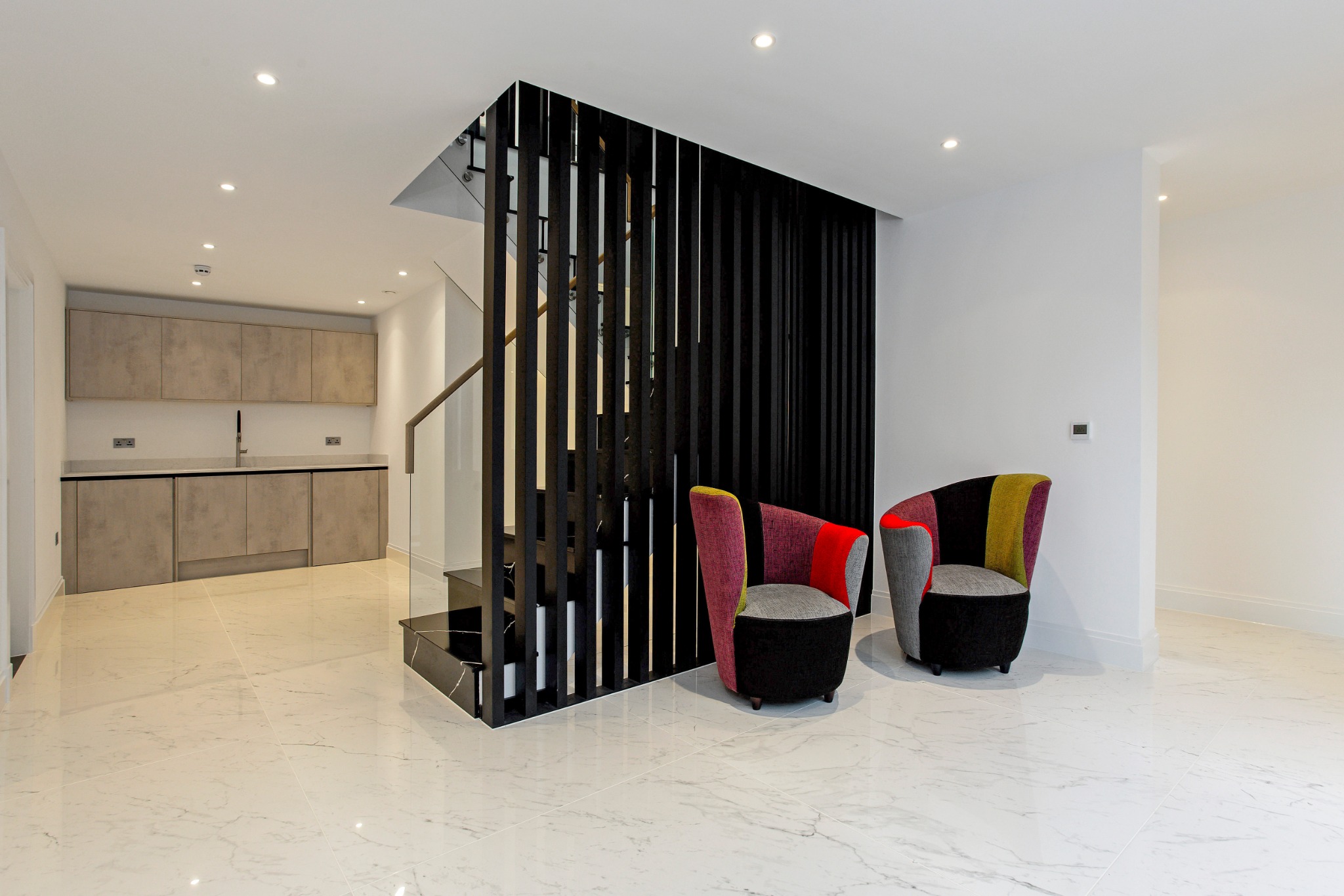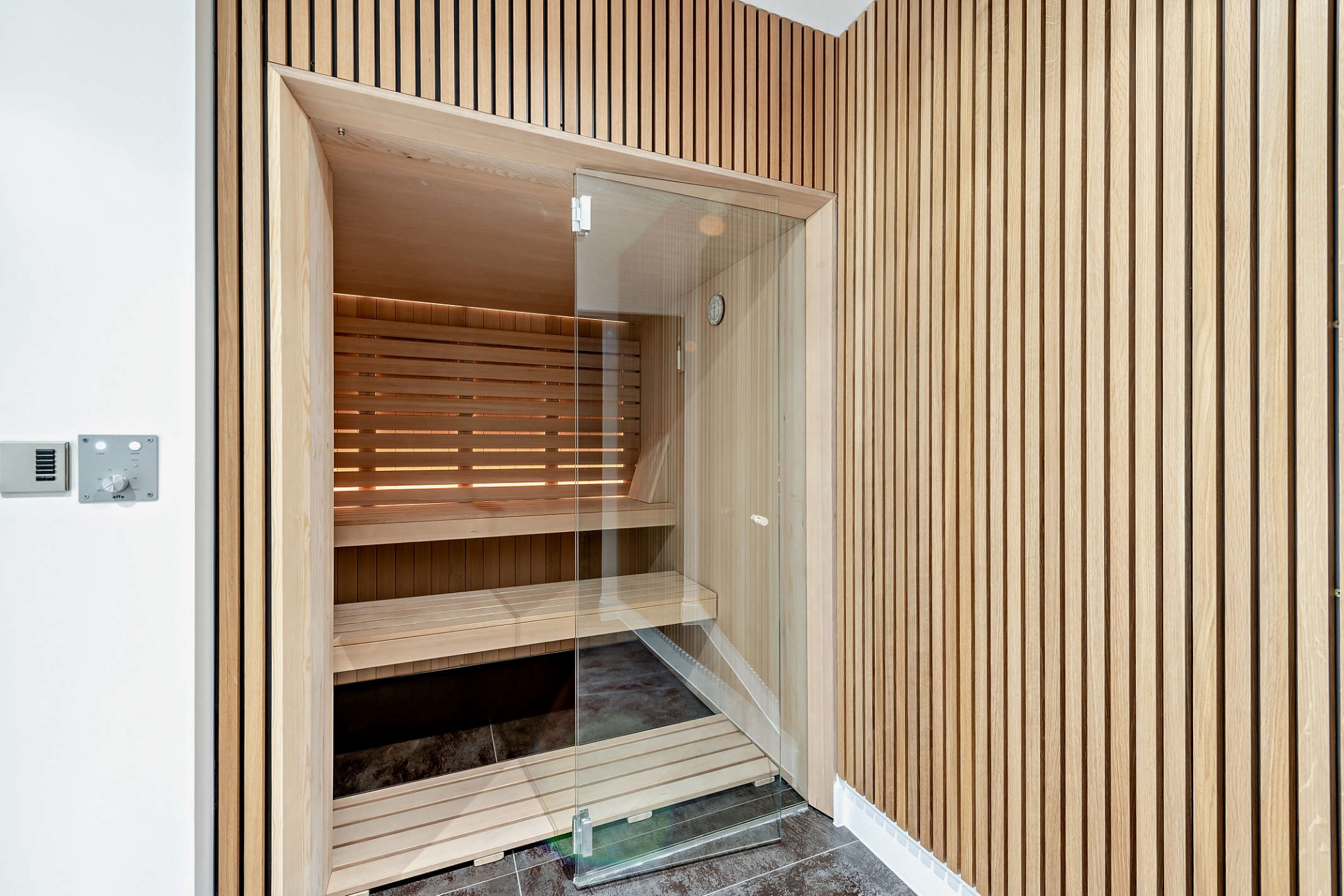 There are four further double bedrooms, all with fitted wardrobes and ensuite shower rooms. The lower ground floor, designed with leisure and entertaining in mind, offers a spacious inner lobby with kitchenette, opening into an air-conditioned games/cinema room with bi-fold doors to an outer courtyard. After using the gym, you can enjoy the steam room and sauna, plus a shower room and wc. Completing the lower ground floor is a plant room for the heating and airflow systems, and a server room for the electronic systems.