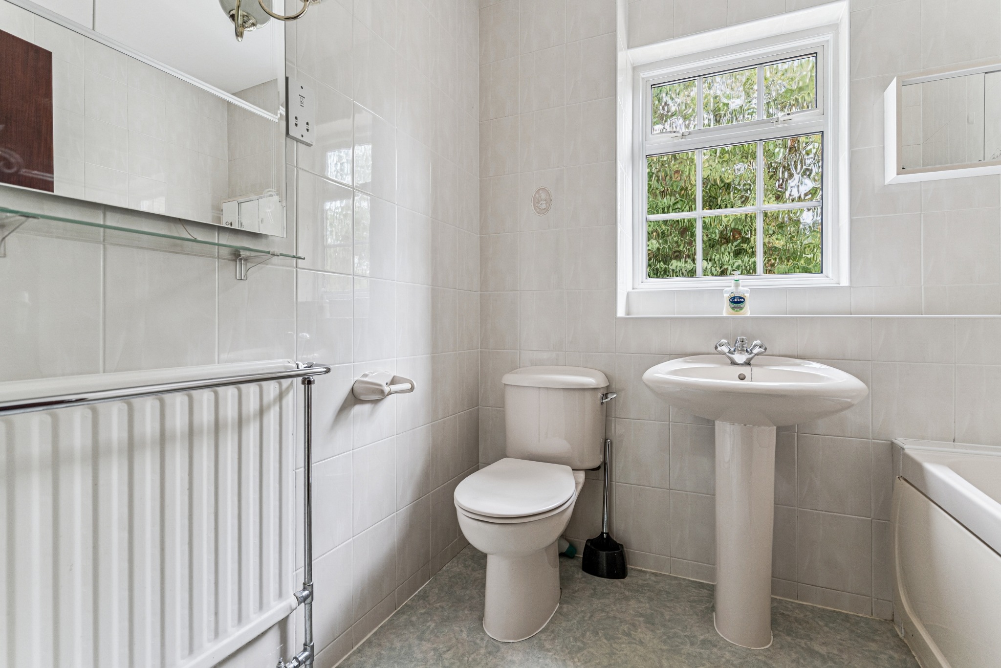 There is a good-sized rear garden that is laid to lawn with a patio area, and a large frontage providing off-street parking for several cars. In addition, there is a garage.