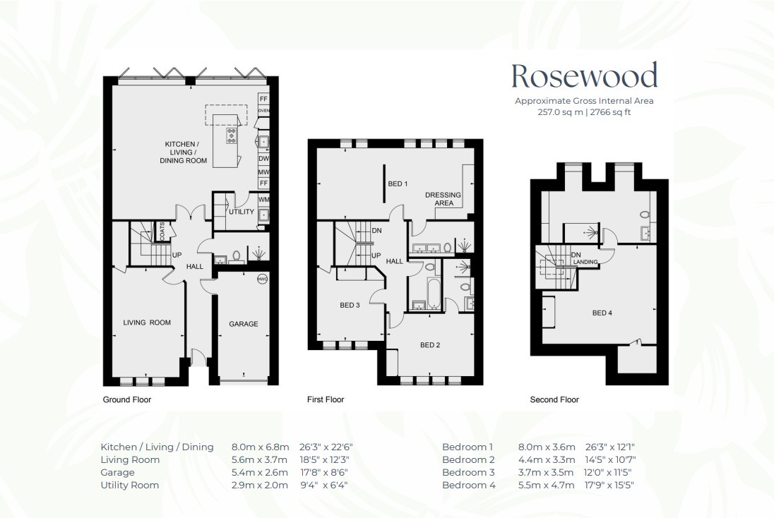 Willowgate and Rosewood are four bedroom family homes all offering individual interior styles that includes high-quality kitchens with integrated appliances from trusted brands, sumptuous master bedroom suites with private dressing rooms and en suite bathrooms, creating a superior standard of luxury living throughout.