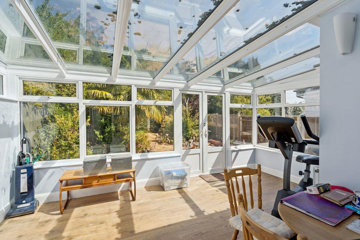 The accommodation comprises a welcoming entrance hallway, two well-proportioned double bedrooms, a family bathroom, a kitchen and a spacious living room that flows seamlessly into a bright conservatory. Double doors from the conservatory open out onto a private rear garden, complete with a patio area—perfect for relaxing or entertaining.