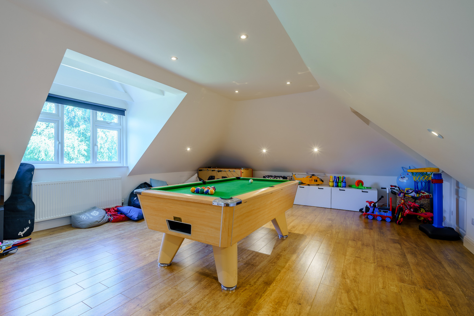 To the first floor is the generously sized principal bedroom with an en-suite. There are four further double bedrooms on this floor, all with en-suite shower rooms, and the modern family bathroom. Stairs lead to the second floor where there is a sixth double bedroom with an en-suite shower room together with a games room, which has access to eaves storage.
