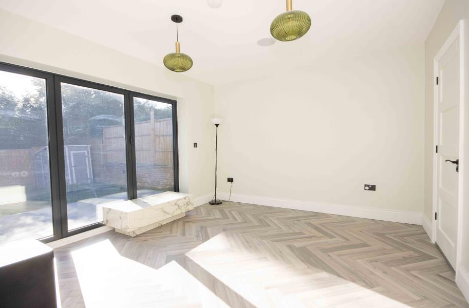 This modern family home, built two years ago, combines contemporary style with energy-efficient living. It features a gated driveway and a welcoming, spacious hallway leading to an open-plan kitchen and bright living area with bi-fold doors opening onto the garden, with the kitchen boasting high-spec appliances and a sleek island. A versatile ground-floor en-suite bedroom with direct garden access, a study, and an integrated audio system enhance the home’s flexibility and modern appeal. Upstairs, the master bedroom offers walk-in wardrobes and a luxury en-suite, while two further double bedrooms share a stylish Jack and Jill bathroom. Outside, the property enjoys a landscaped rear garden with a lawn, terrace, and a sizeable storage shed, along with ample gated parking, while the front of the home features a dedicated lawn play area for children.