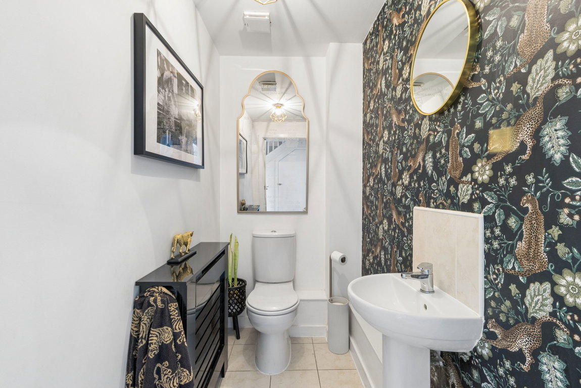 This charming family home offers stylish and modern living throughout, complemented by off-street parking and an attractive rear garden. The ground floor comprises an entrance hallway leading to a convenient guest WC and a front-aspect contemporary kitchen, featuring a good selection of fitted units and integrated appliances. To the rear, a spacious living/dining room provides an excellent entertaining space, with French doors opening out onto the garden.