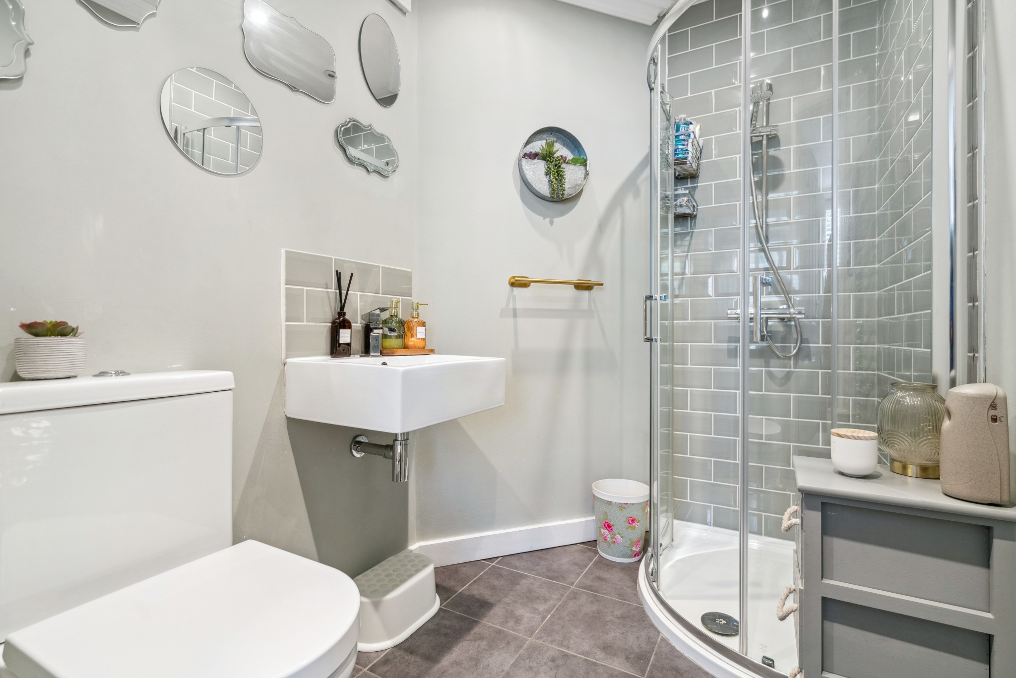 The ground floor comprises a bright entrance hallway with stairs to the first floor. Off the hallway is an impressive kitchen / dining room featuring a range of bespoke units with integrated appliances, a large kitchen island featuring a wine cooler, a dining area with bi-folds opening out to the garden, and an adjoining utility room. Completing the ground floor is a generous lounge and a double bedroom benefiting from an en-suite shower room.