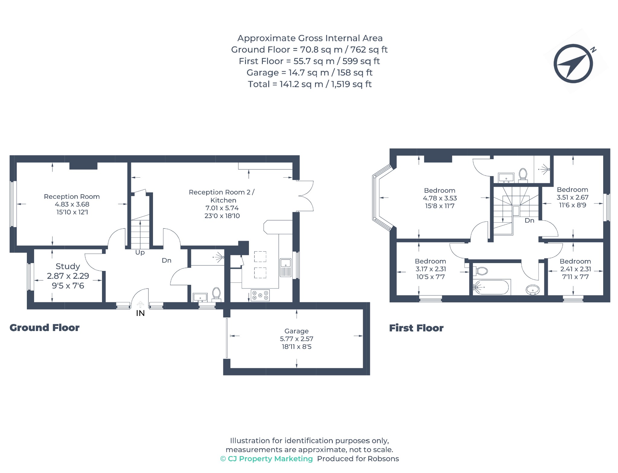 The ground floor comprises a front aspect lounge, an open-plan living/dining/kitchen area with patio doors opening out to the garden, a study, and a shower room & WC. There is a principal bedroom with an en-suite shower room on the first floor, along with three further bedrooms and a family bathroom.