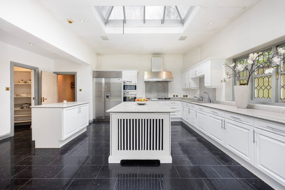 Approaching the residence by an impressive driveway and space for about ten cars, we are met with majestic wrought iron double glazed doors that lead us into the grand reception hall with its captivating feature staircase that gracefully ascends from the ground floor all the way to the second floor, flooded with natural daylight from the stained glass skylight.